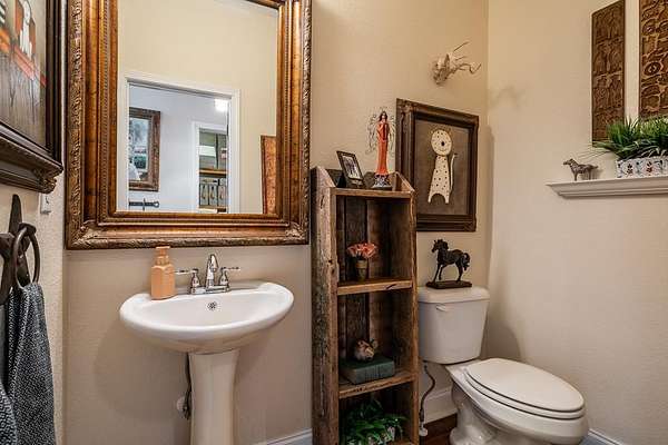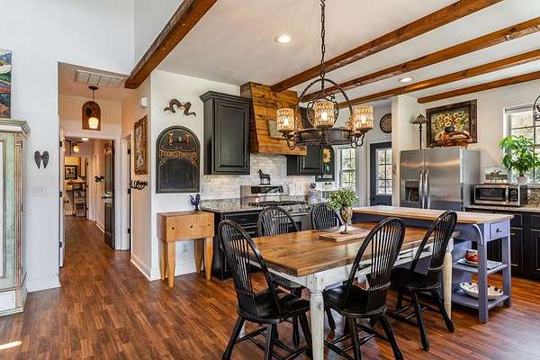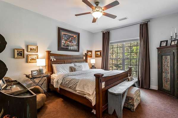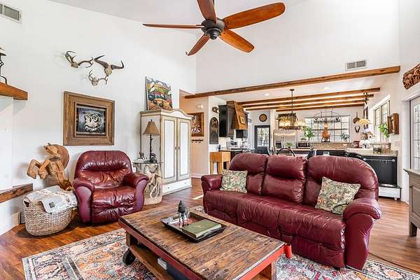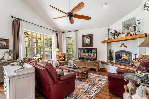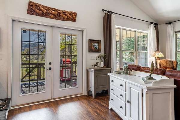 A rare offering, this gated equestrian estate seamlessly blends natural beauty, versatility, and income potential in a truly inspiring setting. Located on a peaceful tract with long-range mountain views, this exceptional property features a beautifully designed 3-bedroom, 2.5-bath residence with 9-foot ceilings throughout, vaulted ceilings in the great room, walk-in closets in each bedroom, and an oversized walk-in pantry--providing exceptional storage and convenience. A dedicated home office offers the perfect work-from-home environment. The estate includes an oversized detached garage/workshop with a fully equipped artist's studio, offering abundant space for creative or professional pursuits. The well-appointed barn with tack room, along with multiple fenced and gated pastures, provides ideal accommodations for horses and endless possibilities for expansion--whether you envision an equestrian haven or a unique glamping retreat. Nestled beside a tranquil creek, a custom-built treehouse with loft and private outdoor bathroom creates a memorable guest experience and is perfectly suited as a short-term rental or additional living space. Whether you're seeking a private sanctuary, a creative live/work environment, or an income-generating investment, this extraordinary property offers a lifestyle as limitless as your imagination.