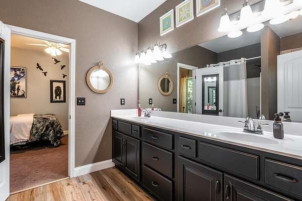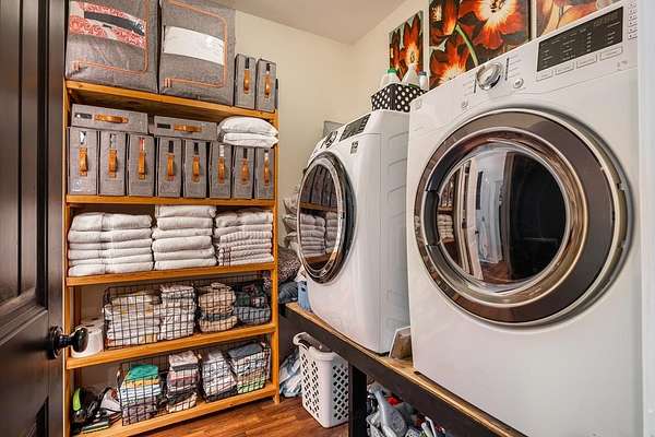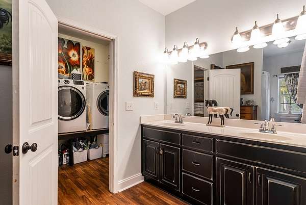 - Ceiling Fan(s), Double Vanity, Granite Counters, Kitchen Island, Laundry On Main, Pantry, Primary On Main, Solid Surface Counters, Vaulted Ceiling(s), Walk-In Closet(s), Washer/Dryer Connection