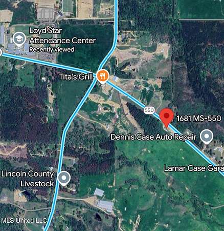 Formerly Sones General Store, this property offers multiple income-producing opportunities on 2.3+/- acres with over 500 ft of frontage along Hwy 550. The main store building totals 2,116+/- sq.ft., including a 920+/- sq.ft. diner with seating for 24 and a turn-key kitchen. 1,080+/- sq.ft. personal storage building includes a 216+/- sq.ft. covered seating area and would be ideal for more than just storage. Multiple security cameras with remote viewing capabilities provide added peace of mind. A large gravel parking lot is ideal for 18-wheelers and offers potential for paid parking income. Undeveloped acreage provides room for expansion with no restrictions or zoning requirements outside of Hwy setback requirements. Conveniently located 6 minutes from I-55 at North Brookhaven, less than an hour south of Jackson, MS, and 2.5 hours from New Orleans, LA. Endless possibilities await-whether you envision a retail space, restaurant, investment opportunity, or your own custom project, this property can accommodate it all.