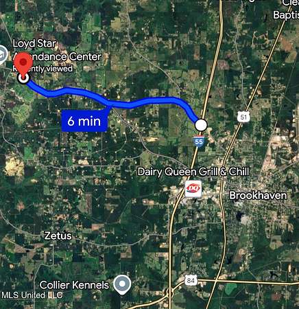 From I-55 Exit 42, Brookhaven, MS 39601: Head northwest on Dunn-Ratcliff Rd NW/Union Street Extended NE toward Furniture Rd. Continue for 2.7 miles. Turn right onto MS-550 W. Continue 2.5 miles. The destination, 1681 MS-550, Brookhaven, MS 39601, will be on the left.