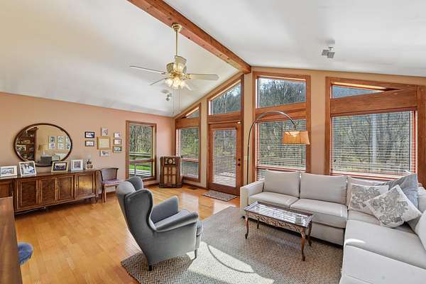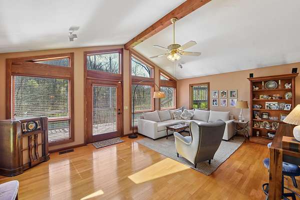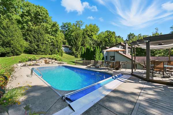 Welcome home to this beautifully maintained fully PRIVATE custom built home situated on just over 9 acres of land. This move-in ready home offers the perfect blend of comfort space and seclusion. Step inside to find a uniquely designed layout featuring generous living areas a tastefully finished kitchen with quartz counter-tops and ample windows that flood the home with natural light throughout. The spacious bedrooms provide flexibility for family guests or a home office while three full bathrooms add everyday convenience. Outside the possibilities are endless. Enjoy peaceful views and plenty of space for outdoor entertaining and hobbies and take full advantage of the heated in-ground pool perfect for relaxing or hosting all summer long. Major updates provide peace of mind including a new roof(3/2026) with a 50 year transferable warranty as well as updated HVAC(2024) and water heater(2023).