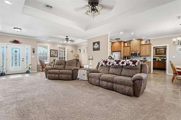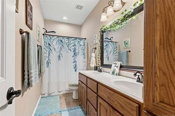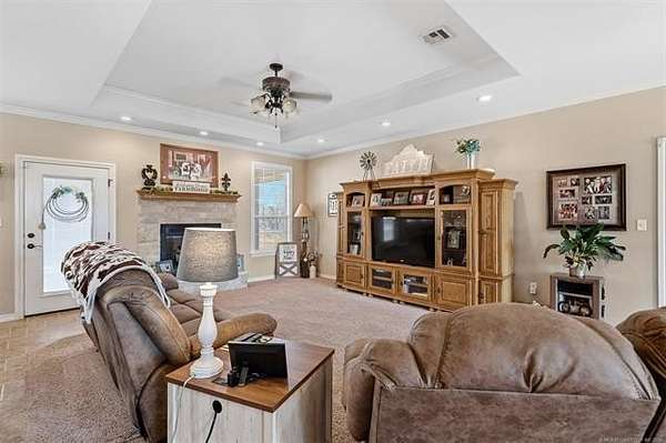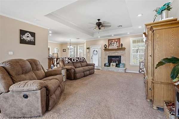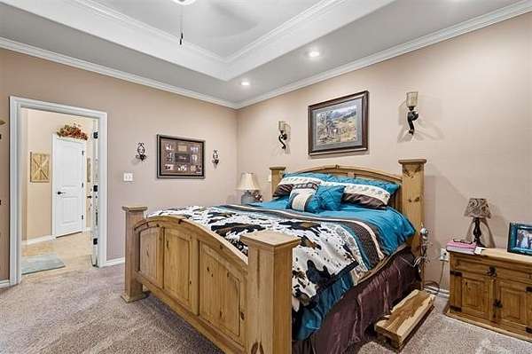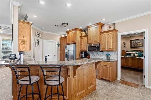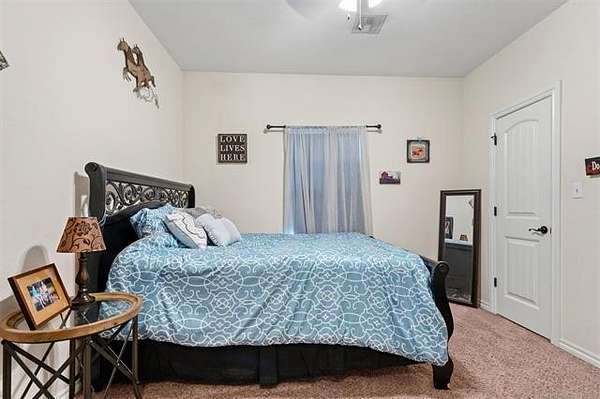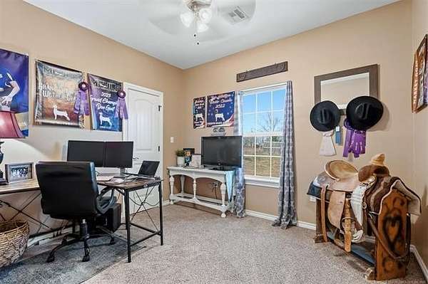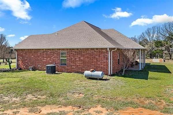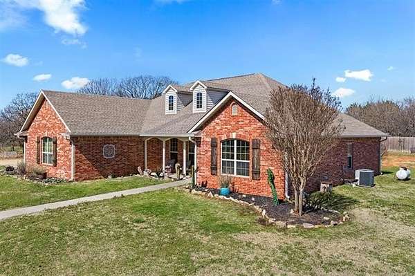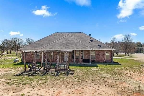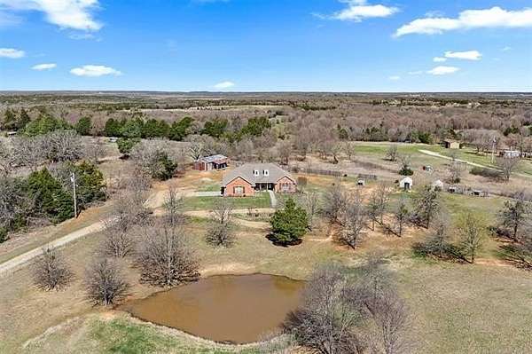 Hard-to-find 5.5-acre horse property with barn, stock pond, and cross-fenced pasture just minutes from Ardmore and Madill. Conveniently located with easy access to Lake Texoma and Lake Murray, this property offers the privacy of country living while still being close to town. This property will qualify for USDA Rural Development financing. This well-built 4-bedroom, 2-bath brick home, constructed in 2012, features a spacious layout with large bedrooms, including a generous primary suite with double sinks, jetted tub, oversized tile shower, and an exceptionally large walk-in closet. Three of the bedrooms include walk-in closets. The kitchen offers granite countertops, ample cabinets, pantry storage, and a functional layout for everyday living. Kitchen appliances will remain with the home, and the washer and dryer are negotiable. A large laundry room with sink and additional storage adds convenience. Additional features include an oversized garage with extra storage space, floored attic storage above the garage, a propane fireplace, water softener, and water booster system. The property is fully fenced and cross-fenced for livestock with wide gates for convenient access throughout the acreage. Improvements include a 20x40 barn with tack and cooling room for show livestock, a stock pond, storm shelter, and a cedar pergola with lighting that creates a great outdoor gathering space. Rural water, septic system, and trash service are in place. With barn, pond, and cross-fenced pasture already in place, the property is suited for horses, show livestock, or small-scale ranching. The cross-fenced pasture, barn, and pond create a livestock-ready setup with excellent space for turnout and riding. Per seller, school district options may include Mannsville, Dickson, Madill, or Tishomingo. Buyer to verify school district availability. Properties with acreage, barn, and pond in this location rarely come available.