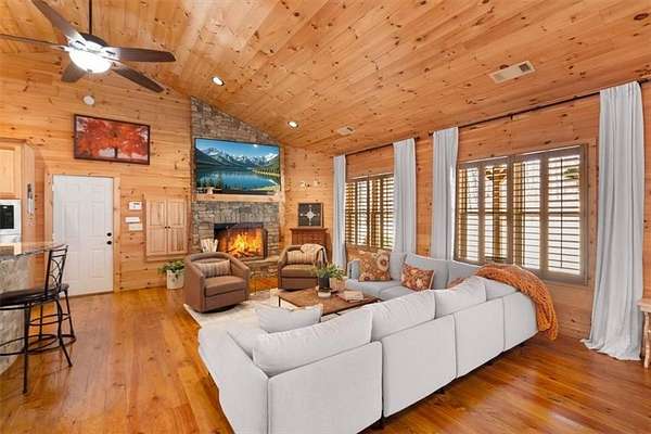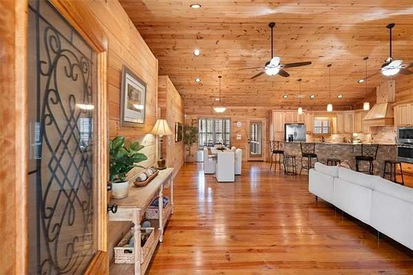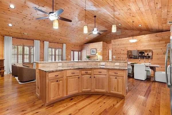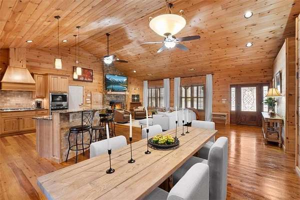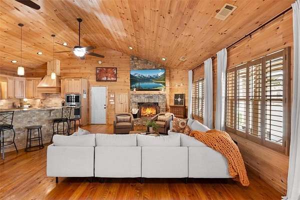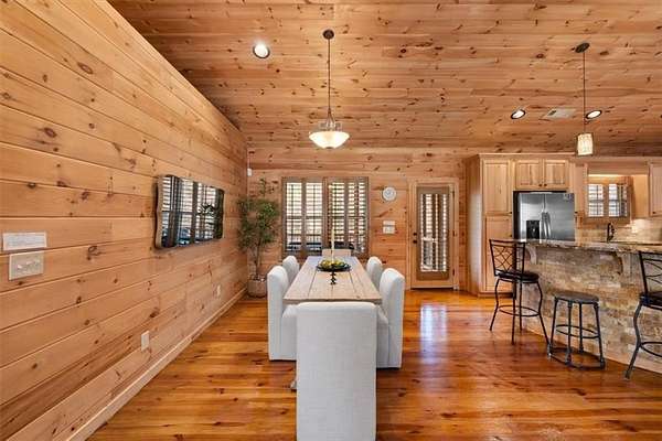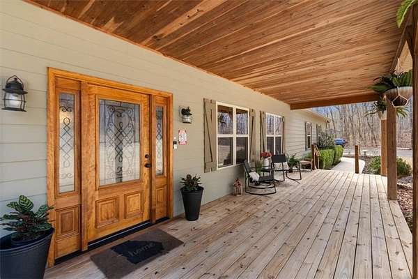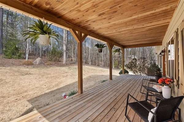 Situated on over 6 private acres, this beautiful Craftsman mountain cabin-style home offers the perfect blend of peaceful country living and modern comfort. Custom built in 2015, the home features 3 bedrooms, 3 bathrooms, and approximately 3,780 square feet of thoughtfully designed retreat-style living space. The spacious layout includes open-concept living and dining areas ideal for entertaining, while large windows fill the home with natural light and showcase the surrounding wooded landscape. Multiple indoor and outdoor living areas create the perfect setting for relaxing or gathering with family and friends. Two additional bonus rooms provide flexible space for bedrooms, offices, or hobby areas. Exceptional upgrades include a whole-house generator, whole-home surge protection, and a 220V garage hook-up, offering convenience and peace of mind. Enjoy the privacy and versatility of acreage living, with plenty of space for outdoor activities, RV parking, or future additions. Whether relaxing in the tranquility of nature or hosting guests, this home offers the space and serenity many buyers are seeking. Conveniently located in Cherokee County, you'll enjoy the quiet of rural surroundings while still being just minutes from Canton's shopping, dining, and schools. A rare opportunity to own acreage with a newer custom home in a highly desirable area.