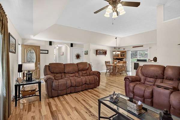 Welcome to 16823 Kites Drive, nestled at the foothills of the Blue Ridge Mountains in Elkton, Virginia. This private oasis was thoughtfully designed and custom-built by the current owner, & has been meticulously maintained ever since. Set on a beautifully manicured, partially wooded lot, the property offers exceptional privacy & a serene, park-like setting. Enjoy the peaceful surroundings from the inviting covered front porch or the expansive rear deck—perfect for relaxing or entertaining. Inside, the open-concept great room showcases rich hardwood flooring, a tray ceiling, & an abundance of natural light. The main level features 3 spacious bedrooms and 2.5 baths, along with a generously sized mudroom complete with laundry & ample storage. The primary suite provides a comfortable retreat, featuring a well-appointed en-suite bath with a soaking tub, separate shower, & a large walk-in closet. The recently finished lower level expands the living space significantly, offering a cozy den, a second kitchen ideal for hosting gatherings, a recreation room, multiple storage areas, & a utility room. You’ll be impressed by the spacious 26×24 detached garage, conveniently connected to the home by a breezeway.