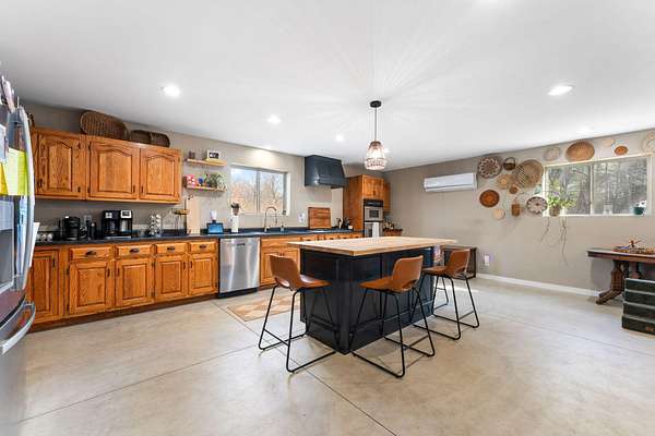 Peaceful country retreat turnkey 2 bed / 1 bath barndominium on 5 acres. The open-concept living area features a spacious layout, a large bathroom, and a modern kitchen with stainless steel appliances, clean, bright, and ready for comfortable everyday living. Attached is a finished 2,000 sq ft shop built for serious projects. Fully insulated walls, R-50 blown-in ceiling insulation, bright dimmable LED lighting, and radiant floor heat. The shop's heating is zoned separately from the living quarters so you can maintain different temperatures in the house and workspace year-round. Property highlights: the 5-acre parcel is already subdivided (the adjacent parcel is a basement lot), includes a one-acre asparagus field, trails winding through the woods, a long private driveway, and a chicken coop. Located on a very quiet road, this secluded setting offers privacy and the feeling of a true country escape. Perfect for someone wanting a comfortable home plus a high-performance shop, hobbyist, small-business owner, or homesteader. Contact for showing and additional details.