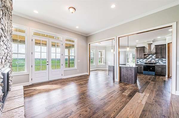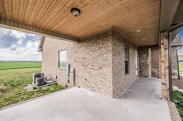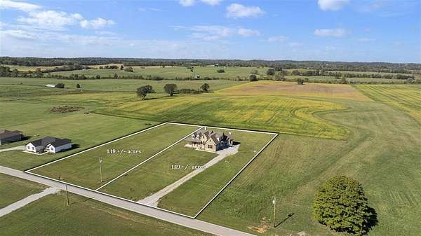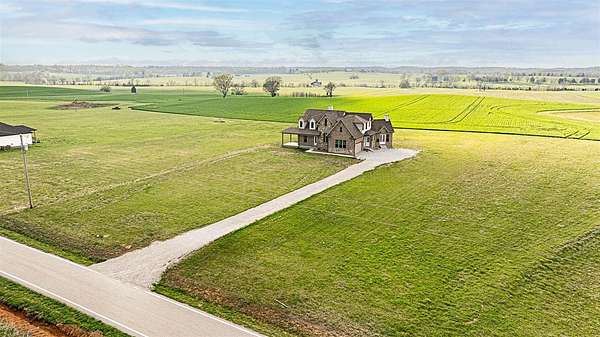 Experience modern country living in this newly constructed 2023 custom home featuring 4 bedrooms, 2.5 baths, and a 2-car garage on two legal parcels totaling 2.39 acres. Originally built as a forever home, changing life plans now make this exceptional property available to the next owners. Set in a picturesque farm-view location, the home overlooks rolling hills, rotating crop fields, and peaceful countryside scenery. A long private driveway leads to expansive front and rear yard areas--offering plenty of space for a pool, shop, garden, or additional outdoor living. Enjoy both front and rear covered porches with custom lighting and architectural overhangs. Inside, tall ceilings and abundant natural light create an open and welcoming feel. Views from every window. Two floor-to-ceiling stone fireplaces anchor the living spaces, complemented by a formal dining room, separate living areas, a breakfast nook, and a well-appointed kitchen. A generous laundry room and large walk-in pantry add everyday convenience. The main-level primary suite features a luxurious walk-in shower, custom soaking tub, and oversized walk-in closet. The upper level includes a cozy loft, three additional bedrooms, a full bath, and an office--providing flexibility for work, guests, or hobbies. The home is serviced by county water, electric, propane, and high-speed fiber internet. The serene rural setting offers privacy while remaining convenient--just 12 miles south into Bowling Green, only a few miles to the quaint town of Auburn, and an easy drive to Nashville for weekend getaways. This sale includes two parcels: the home situated on 1.19 acres, plus an adjoining 1.19-acre lot. The additional parcel is ideal for a future shop, guest house, family build site, or added privacy buffer. A beautiful property in a peaceful country setting with incredible potential.