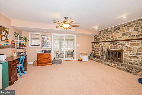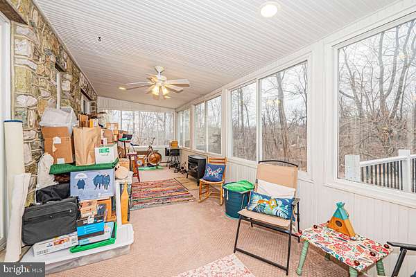 Stunning four-level stone estate set on over 11 acres of pristine countryside in Sabillasville, offering privacy, flexibility, and timeless craftsmanship with NO HOA. A grand two-story foyer welcomes you with tiled flooring and a convenient powder room with direct access to the laundry area. Just off the foyer, the expansive living room showcases a wood-burning fireplace and flows seamlessly into the mudroom and attached two-car garage. Adjacent to the living room, a cozy sunroom provides the perfect retreat and opens onto a Trex deck, ideal for enjoying sweeping, unobstructed views of the surrounding landscape. The lower level offers exceptional versatility, featuring a wood-burning stove, walk-out access to the backyard, and an oversized bedroom with luxury vinyl plank flooring, its own wood-burning fireplace, and a private en-suite bathroom with tiled floors, stone-top vanity, and tub/shower combination. ROUGH-IN PLUMBING is already in place for a kitchenette, making this level ideal for an in-law suite, guest quarters, or multi-generational living. The main living level highlights a combined dining and family room with hardwood floors and a dramatic floor-to-ceiling stone fireplace spanning the whole width of the room. A large picturesque window frames tranquil front-yard views while flooding the space with natural light. The family room flows effortlessly into the kitchen, which features tiled floors, recessed lighting, granite countertops, stainless steel appliances, and pantry storage. Upstairs, the expansive primary suite impresses with plush carpeting, three closets spanning the width of the room, and a luxurious spa-style en-suite bath complete with dual stone-top vanities, tiled flooring, soaking tub, and a large walk-in shower with tiled walls. Two additional generously sized bedrooms on the upper level with hardwood floors and ample closet space both sharing a modern hallway bathroom. Completing this remarkable property is a grand circular driveway lined with majestic evergreens providing year-round privacy, an impressive collection of mature and maturing fruit trees (peach, apple, cherry, pear, and plum), and an exceptional variety of specimen trees including European Beech, Dawn Redwood, Japanese Maple, Red Maple, Wild Cherry, Autumn Olive, and more. Additional highlights include a detached garage and a private, stocked pond, creating a truly rare lifestyle opportunity where space, nature, and elegance meet.