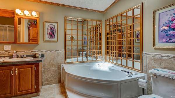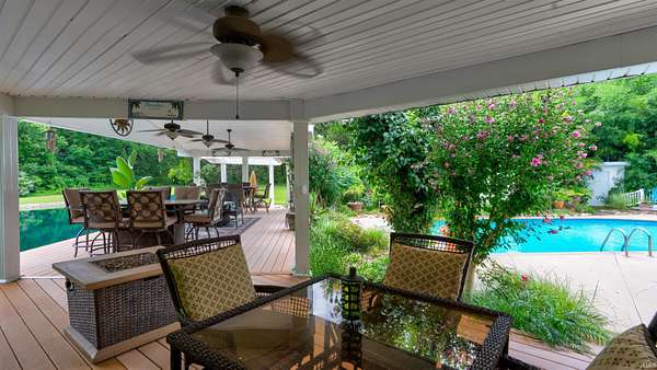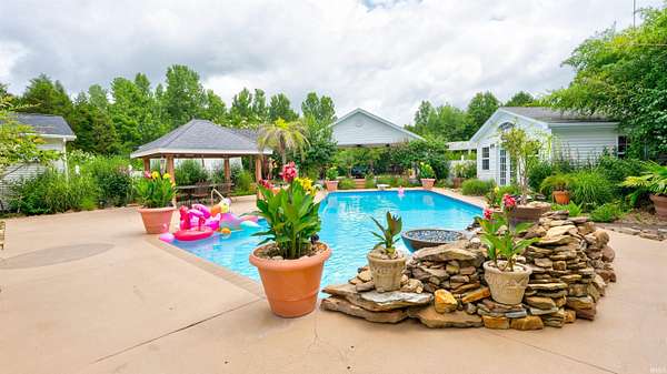 Welcome to Your Dream Vacation at home! Featuring 4 spacious bedrooms and 4.5 elegant bathrooms, this thoughtfully designed residence offers a modern open-concept layout, high-end finishes, and abundant natural light throughout. The gourmet kitchen boasts tile countertops and a generous island--ideal for entertaining. Relax in the serene master suite with a walk-in closet and a spa-inspired ensuite bath. Along with the private patio that walks out to the pool and hot tub. Outside, enjoy a beautifully landscaped yard, covered patios, a 2-car attached garage, next to the detached 3 car garage with an attached greenhouse. Nestled along the countryside, with roof covered wrap around decks to enjoy your pool parties. This home offers a private lake fully stocked, in the back of the home with an optional pool house or mother-in-law sweet with full kitchen, bedroom and bathroom with laundry.