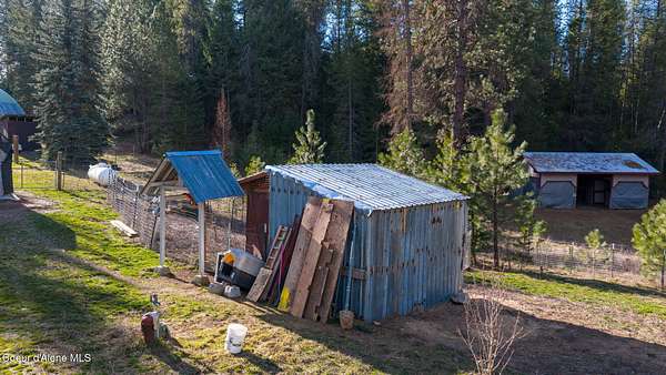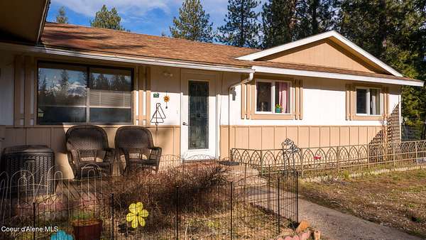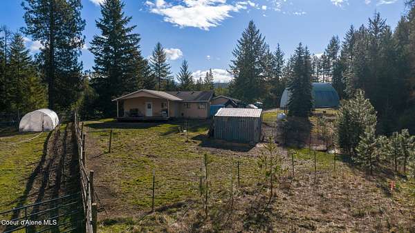 This cozy 3bd/2ba country cottage in Bonner County offers space, peace and everyday practicality. It sits on 2 sprawling acres with various species of pine trees, just minutes from Bayview and Farragut State Park. The 1250 sq ft. home offers simple living on one level. The master bedroom has a spacious, attached sitting room allowing flexibility and functionality. Covered deck off the master bedroom is ideal for outdoor meals, watching beautiful north Idaho sunsets and frequent visiting deer. Out-buildings, including a large 48x30 ft quonset shop, are in place to store tools, equipment, and seasonal outdoor toys. Private well with deeded water rights included! Additionally, the property has been recently surveyed and is fenced and cross-fenced. This property delivers land, house, and opportunity in one setting.