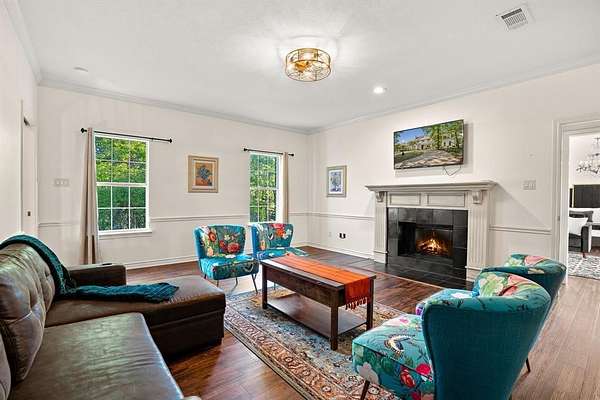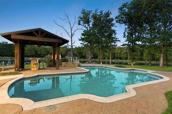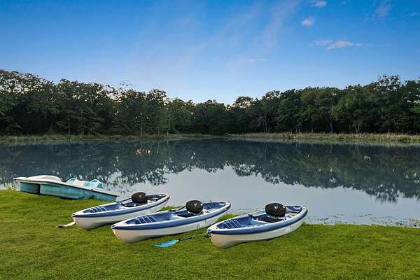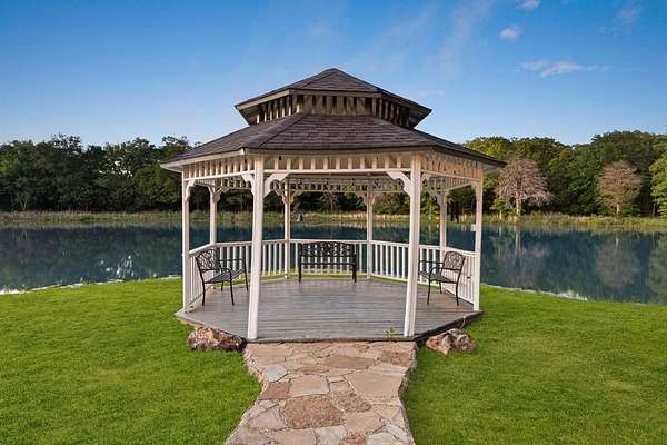 Leave the city behind and immerse yourself in unmatched luxury and seclusion on this extraordinary 50-acre estate. Enter through a gated entrance and follow a lamp-lit, paved driveway that winds through immaculate landscaping and towering trees. At the end of the drive, a stunning 4,780 sq. ft. custom-built manor surrounded by private lake, seamlessly blending classic elegance with cinematic grandeur. Step inside to discover rich hardwood floors, handcrafted finishes, and five stately fireplaces that create warmth and sophistication throughout. The dramatic foyer opens to a formal dining room, a spacious home office or secondary living, and a grand living area complete with a full wet bar--ideal for hosting guests in style. The gourmet kitchen is a chef's dream, featuring travertine tile, a striking copper backsplash, granite countertops, a large island with a built-in cooktop, and a sunlit breakfast nook.The luxurious owner's suite offers a peaceful retreat, with its own private sitting area, double-sided fireplace, three walk-in closets, an expansive en-suite bath with Jacuzzi tub and separate shower, and a private balcony with tranquil views. Outside, your personal resort awaits. Relax by the sparkling pool and spa, entertain at the outdoor bar and gazebo, or unwind by the firepit under the stars. Additional features include a 1,025 sq. ft. industrial-grade workshop with a climate-controlled 24x24 space and full bath, a chicken coop, greenhouse, two covered awnings, and miles of private nature trails to explore. A rare offering of timeless sophistication, natural beauty, and total privacy.