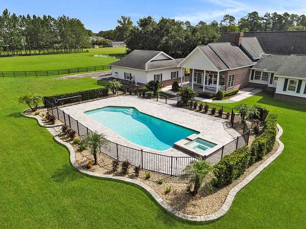 Welcome to your private 9.73-acre countryside retreat in Middleburg, zoned Residential and Agricultural-perfect for horses, cattle, or hobby farming! This 5,191 sq ft estate offers 4 bedrooms and 4 bathrooms, with a flexible layout designed for multi-generational living. The main home features a spacious living room, a separate den, a large kitchen, and a primary suite with spa bath, jetted tub, and custom walk-in closet. A private attached in-law suite includes its own entry, bedroom, living room, kitchenette, and office. Enjoy sweeping views from the wrap-around porch, relax by the saltwater pool and spa (renovated 2020), or explore the man-made pond, 3 fenced pastures, and a picturesque tree-lined driveway. Additional structures include a barn with stables and feed storage and a detached 3-bay workshop/garage with office and bath. This rare property blends rustic charm with modern comfort-all just minutes from city conveniences.