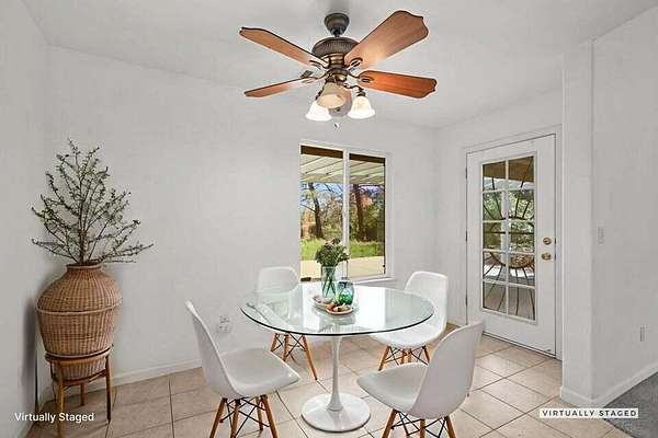 Endless potential awaits with this custom home situated on over 2.5 acres and featuring an impressive, oversized shop. The thoughtfully designed split floor plan centers around a spacious living room and includes a flexible bonus office space. The kitchen is well-appointed with a breakfast bar, cozy dining nook, and a separate formal dining room, making it perfect for both daily living and entertaining guests. Step outside to enjoy the large covered patio, ideal for outdoor dining, barbecues, and relaxing gatherings. The backyard is highlighted by a massive 36' x 48' metal shop with 15-foot roll-up doors, along with an additional storage shed, providing ample space for projects, equipment, or recreational storage.