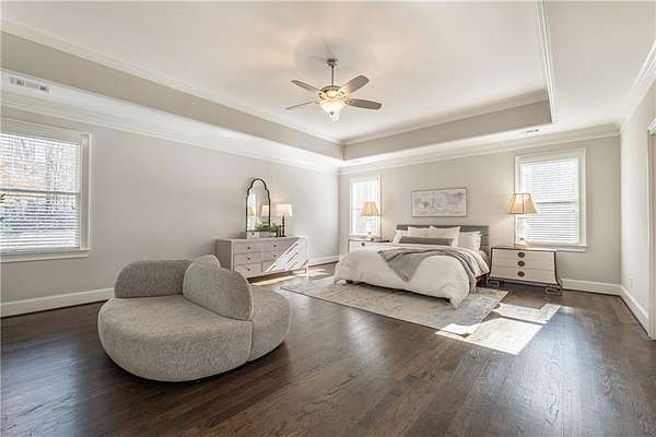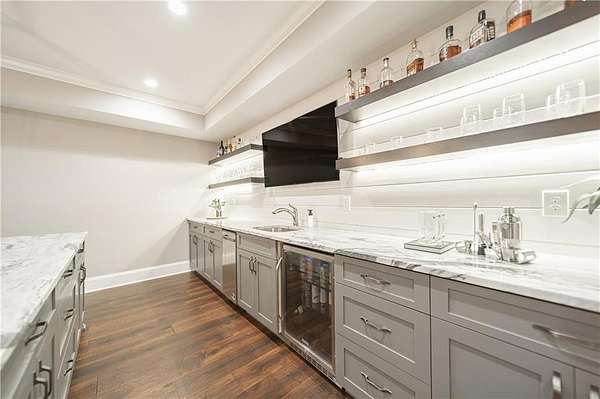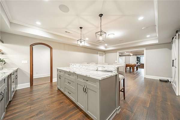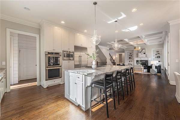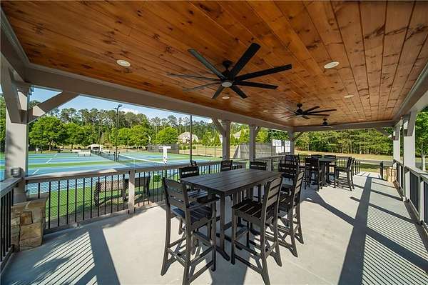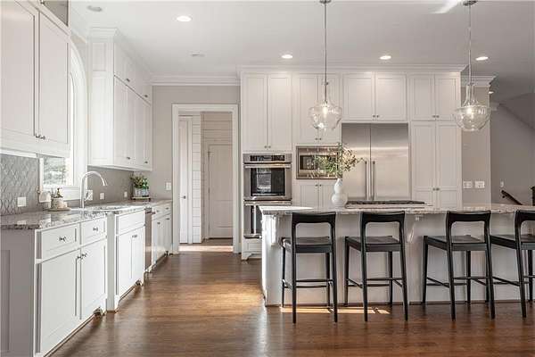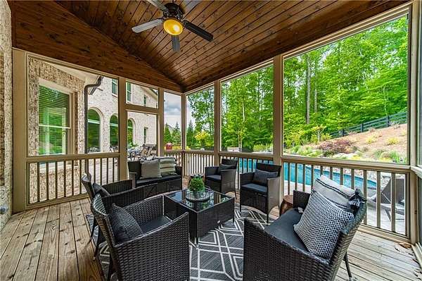 Priced below appraised value! Welcome to this beautifully built home in the privately gated community of Kingsley Estates. Designed with entertaining in mind, the home offers easy flow to the walkout backyard overlooking the resort-style pool, spa, and lush landscaping. Multiple outdoor living spaces include a screened porch, expansive deck, and a custom firepit, perfect for gathering year-round. This stunning four-sided brick and stone home showcases quality craftsmanship and a phenomenal open floor plan. Built in 2016, it offers a thoughtful balance of formal and informal living spaces for everyday comfort and entertaining. The main level features hardwood floors throughout, an expansive kitchen open to the keeping room, a dedicated office, separate living and dining rooms, and a guest suite. Upstairs, newly added hardwoods continue into the spacious primary suite which includes a spa-like bath and exceptional closet space, along with three additional generously sized bedrooms, each with its own bath and closets. A large bonus room provides flexible space for a playroom, media room, or additional living area. The terrace level is equally impressive, featuring a media or theatre room, kitchen and bar, gym, full bath, additional office space or possible bedroom, and recreation area, a space designed for both fun and functionality. Every detail invites you to want to call 16845 Quayside Drive home. Residents of Kingsley Estates enjoy access to a large pool, clubhouse, playground, and tennis courts. Award-winning schools include Birmingham Falls, Northwestern Middle, and Cambridge High. Convenient to Publix, 7 Acres Bar and Grill, The Union, Matilda's at the Porch, downtown Crabapple, Milton's Marketplace, Alpharetta, and Avalon. This move-in-ready home offers exceptional space, style, and lifestyle.