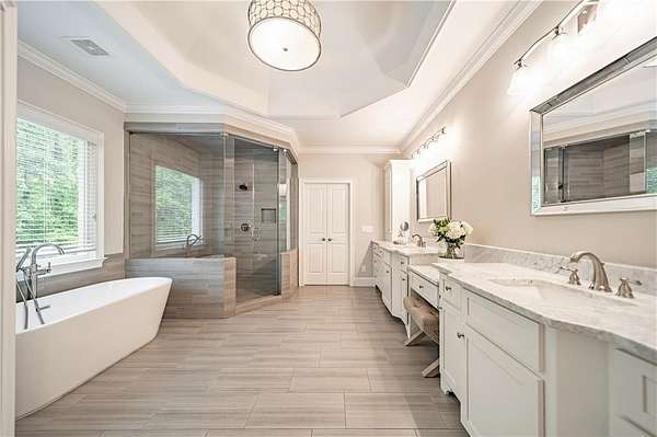 - Beamed Ceilings, Bookcases, Coffered Ceiling(s), Disappearing Attic Stairs, Double Vanity, Entrance Foyer, Entrance Foyer 2 Story, High Ceilings 10 ft Main, High Speed Internet, Vaulted Ceiling(s), Walk-In Closet(s)
