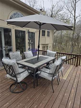 Stunning Atrium Split home with open floor-plan and with so much of natural light! Kitchen has gorgeous stacked stone accents, stainless steel appliances. Hardwood floors in living room. Primary suite features vaulted ceilings, bay window, double vanity, double shower and walk in closet. Finished family room in lower level and finished sub-basement. 5 year old 50 year roof, recently updated flooring, paint and more. Beautiful above ground pool, deck and shed. Property features woods and a trail. Surrounded by conservation land. Deer, turkey and birds on property. Being sold "as is". *Home will get new HVAC System after closing seller funds will be held*