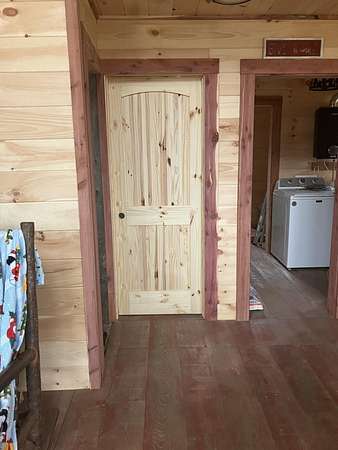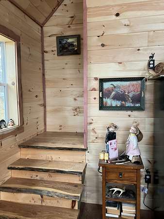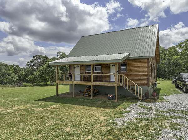 For Sale with Highway U frontage in Texas County this log sided cabin on 10 acres could be the country home you've been looking for. Lots of character with live edge wood countertops and live edge stairs leading to the upstairs loft bedroom. The main level opens to the kitchen/living area with large windows letting you bring the outdoors in. Walls are tongue n groove pine and flooring has a weathered barn wood look with the perfect accent of red. Covered front porch gives you the perfect spot to watch the deer in the late afternoon. There is also a machine shed and a small shop that could be converted back to a dog kennel if needed. Property also has 3 RV hookups. Seller would also consider selling with more land .