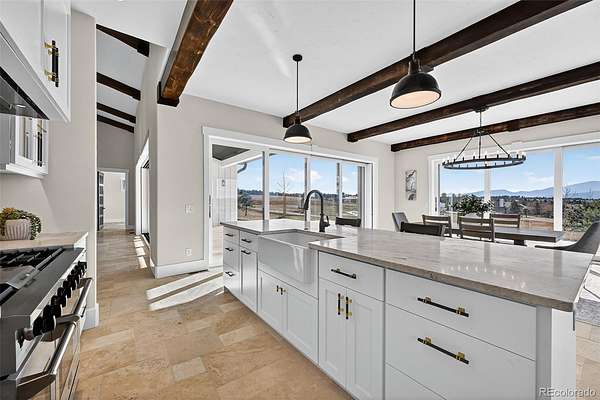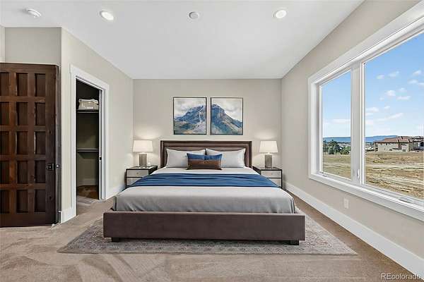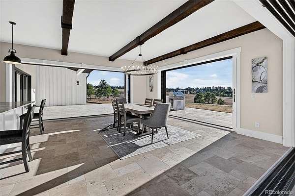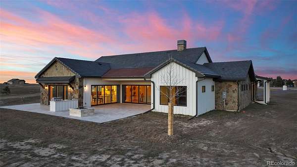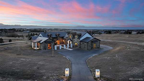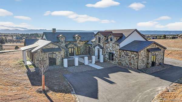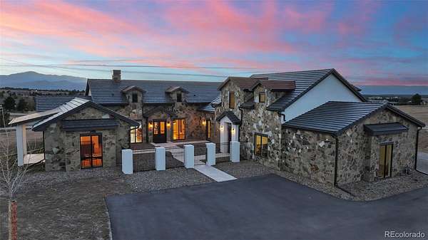 Escape the frenzied pace of Citylife! Enjoy a new lifestyle at picturesque Settler's Ranch just 5 miles east of I-25 at Exit 158. Enjoy unobstructed views of Pikes Peak 24 hours a day from your 2.5-acre homesite. Just 25 minutes from downtown Colorado Springs and 45 minutes from the Denver Tech Center, this setting offers the tranquility you've imagined for your future. This Mark Berry Custom Designed home showcases many STANDARD FEATURES that would normally be considered EXTRAS, Travertine Tile is used throughout this 1.5 level home including surfaces for the outdoor front atrium and rear patio. The Solid Core Alder Doors throughout the home, along with Custom Cabinetry, Box Beams, and Door Trims are fashioned from the builder's mill shop. Retractable Window Walls are spectacular features adjoining the great room and kitchen. All view corridors from the interior spaces are enhanced by the thoughtful placement of windows in all rooms. "Real" stone is used on the exterior as well as the Woodburning Fireplace. This desirable floor plan includes The Great room with fireplace, 17' ceilings (with box beams). The appealing and functional Kitchen area combines practical space with preparation essentials including island with farmer's sink. The rear galley area is thoughtfully designed allowing the 'chef of the day' the quiet space needed for their special guests!