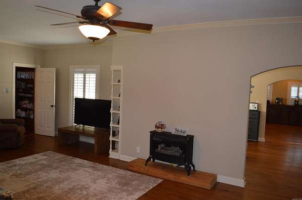 This stunning property boasts 12 acres of beautiful land at the edge of Harrisburg, Arkansas. Offering expansive endless potential for your dreams, whether you envision a private estate, a hobby farm, or a development project. As you enter the front door you feel at home in the large living area along with a den area with pecky cypress covering the walls. There is a beautiful library/study for reading or just relaxing just before you enter the spacious kitchen and dining area. The kitchen offers a breakfast bar, wet bar, gas stove and double oven. There is plenty of room for family and guest to gather to enjoy meals. From the master bedroom is a large master bathroom with a walk in shower, large walk in closet, office area and a safe room. behind the home is a guest house with a fireplace, kitchenette, bedroom and full bathroom, this could be used as Mother in law suite or for overnight guest. Behind the home is also new shop building that is insulated and has electric. The oversized 3 car garage is large enough for an RV or any large vehicle. This one of a kind home and pasture land is move in ready for any family to enjoy.