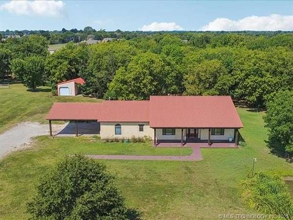 Home has a metal clay tile style roof, covered front porch, covered back patio, and a 2 car carport.