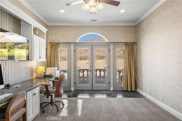 Introducing a rare opportunity in the prestigious Sycamore Rocks neighborhood of Apple Valley: A breathtaking 2.38-acre corner-lot estate with sweeping valley views and a dramatic rocky mountain backdrop. This residence offers 3,658 sq ft of refined living, enhanced by a spacious bonus room, an impressive office with built-ins and private patio, and abundant natural light from multiple large skylights.