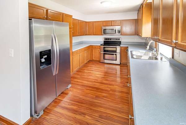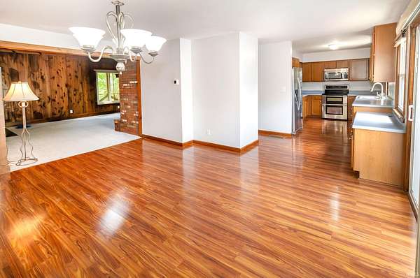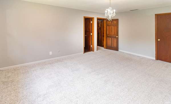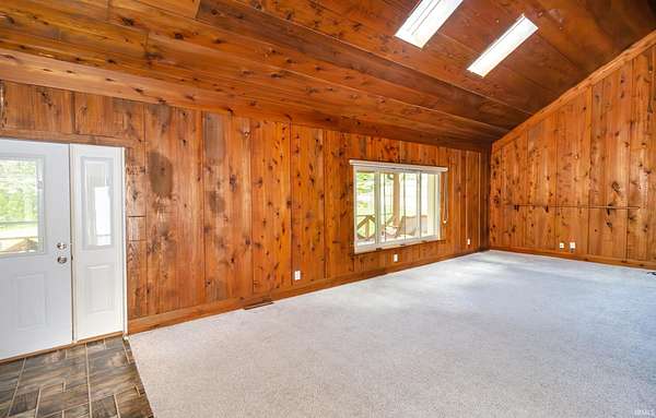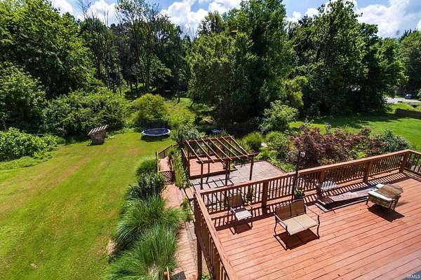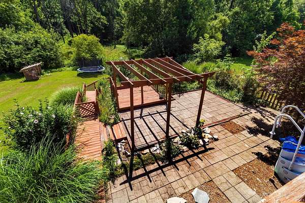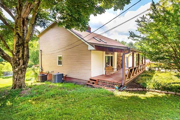 Your private retreat at 1688 Fuquay Rd, where timeless cottage-style charm meets expansive living on 1.5 lightly wooded acres. Handsome stone accents and a welcoming covered front porch, complete with a swing for savoring quiet moments, set a tranquil tone from the moment you arrive.Inside, the great room makes an immediate impression with its vaulted ceilings, cozy carpeting, distinctive wood paneling, and an inviting stone fireplace. The open layout transitions seamlessly into a dining area with direct access to a large wooden deck and stairs leading to the yard. A versatile guest bedroom and a discreetly located half bath on this level offer ultimate convenience. Efficient central ventilation ensures year-round comfort.The upper level is a dedicated zone of quiet and rest, hosting three spacious bedrooms. The primary suite is a true sanctuary, spanning the entire width of the home. It offers abundant space for large furnishings, an exceptionally large walk-in closet ready for any wardrobe, and a private ensuite bath. Two additional, generously sized bedrooms and a second well-appointed full bath ensure comfort for family and guests.The home's dual-zone lower level is a highlight of functionality. The finished walkout portion is designed for leisure, featuring a large recreation room with its own handsome stone fireplace, a versatile den perfect for media, and a private fifth bedroom. For the hobbyist, interior stairs from the main garage lead down to a vast, unfinished and fully waterproofed utility space. This practical area includes a rear-facing overhead garage door, providing direct access for equipment and storage.Your private backyard oasis is an entertainer's delight, designed for making memories. The above-ground pool is encircled by a custom, sun-drenched deck, while a nearby pergola offers a perfect spot for shaded relaxation. With no HOA, the mature trees and rolling grounds provide a canvas for gardening, games, and true freedom.This property's thoughtful combination of five bedrooms, dual garages, multiple living areas, and expansive outdoor amenities on 1.5 private acres offers a rare and complete living experience in the heart of Newburgh.