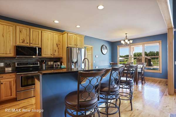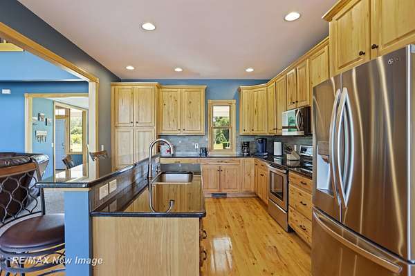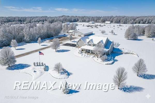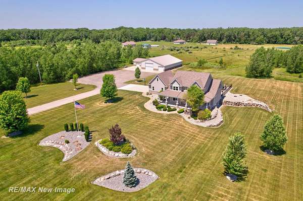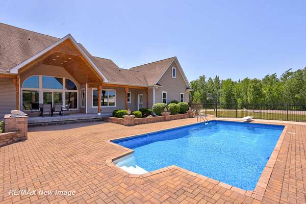 This stunning Custom-built home by Ratti Builders offers the perfect blend of luxury, comfort, and space, both inside and out. Featuring 4 bedrooms, 2 full and 2 half baths, the layout includes a desirable main-floor master suite complete with walk in shower, garden tub, plus his and her closets for added convenience. Situated on over 10 acres, the property is designed for relaxation and entertaining, highlighted by a 32x16 heated inground pool and a beautifully hardscaped patio complete with a fireplace and built-in grill. A tongue-and-groove covered back porch provides a charming spot to unwind. For hobbyists or those needing extra space, the property includes a 40x80 pole building, a 40x44 man cave/pole building, and a 16x80 enclosed lean-to. The fully finished basement is a showstopper, featuring a wet bar, kegerator, workout center, theater room with surround sound, and a secure safe room, with all basement furnishings included. This home is a rare find that truly has it all.
