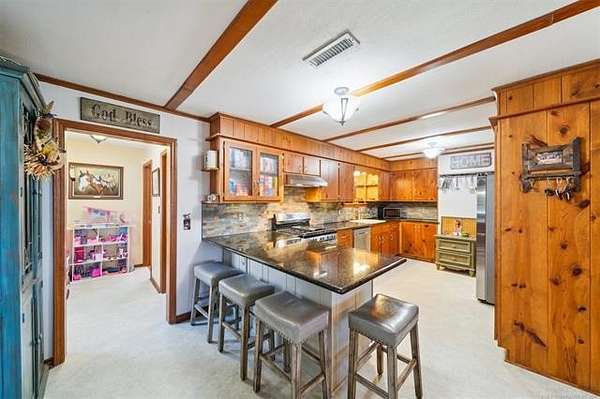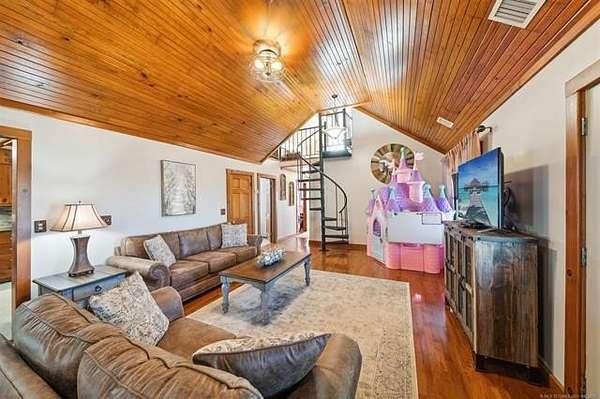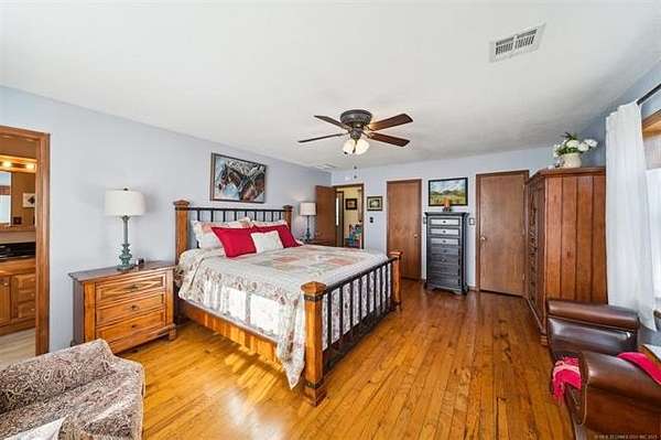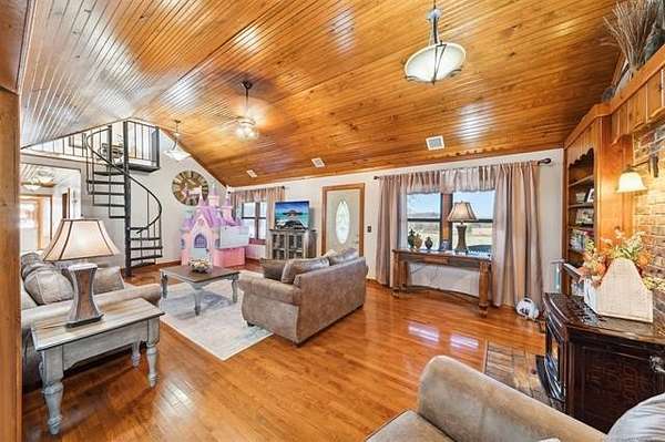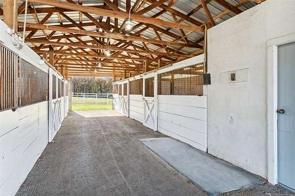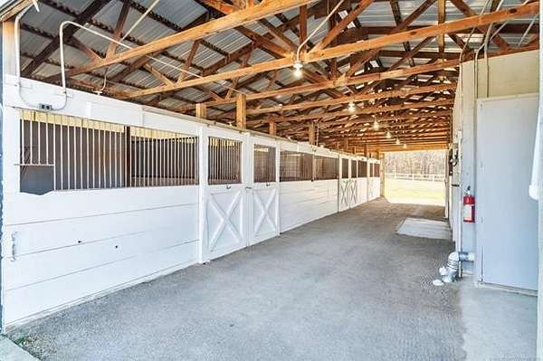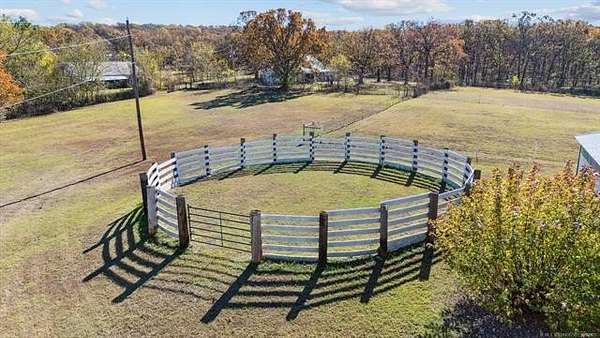 Enjoy the sunset from your porch as the horses graze below. Discover a true haven for horse lovers and families alike with this exceptional 20-acre equestrian ranch. This beautifully appointed home offers 3 bd, 3 ba, with a perfect blend of comfort and southern charm. The living room has a new Hearthstone energy-efficient wood-burning stove and is enveloped in stunning wood floors and ceilings. A circular staircase climbs to the loft, which could be an office, playroom,or 4th bd. The kitchen has beautiful granite counters and a breakfast bar for gathering. Formal dining can seat 10 with lovely views of the property. A comfortable primary suite features 2 large walk-in closets. The outbuildings include 5 barns and 6 loafing sheds lined with wood. Full living quarters are one feature of the 40X60 red iron barn. It also has 4 large MD foaling stalls, wash rack, hot water tank, and a vet area. The 36X60 barn has a new roof, 8 stalls, and a tack room, wash rack, vet area. A 30X36 barn has 4 large stalls. The 50X60 barn has room for 20 stalls, or an open riding area. It has12' overhangs on each side, it's own water and electric meters to control lighting by timers. Also included is a hay barn and round pen. The perimeter of the property is fenced and cross-fenced. All pastures have water and shelter. The property is in an ideal location, 5 miles from the Will Rogers turnpike(I-44); 10 miles from Claremore; 7 miles from the Cherokee Racino horse racing track; 5 miles from the Claremore airport and 40 miles from Tulsa International Airport. This beautiful, comfortable, detailed property has been meticulously maintained just for you and your family! More acreage is available. 9 acres with the 50X60 barn is available-MLS#2522166; 11.4 acres with utilities is available-MLS #2530424