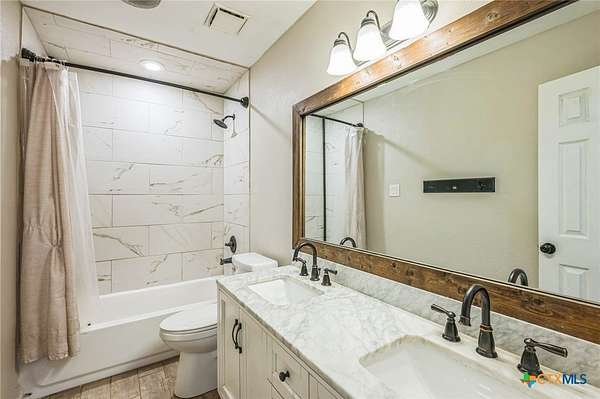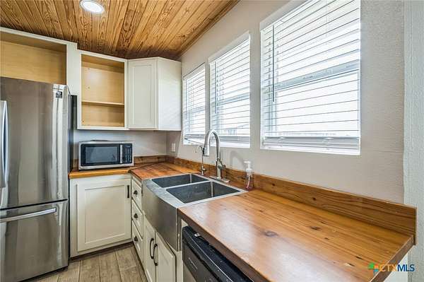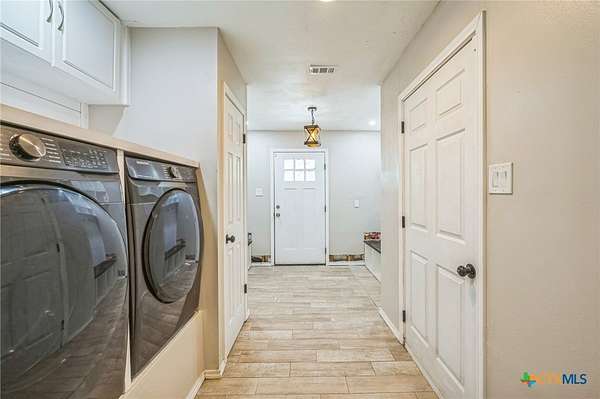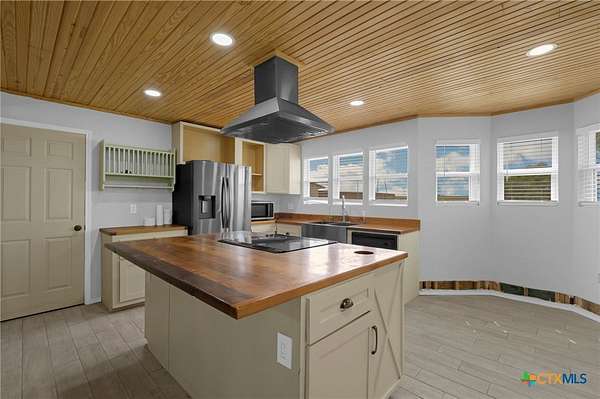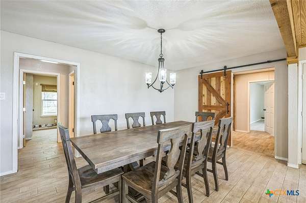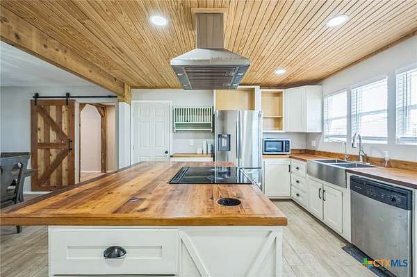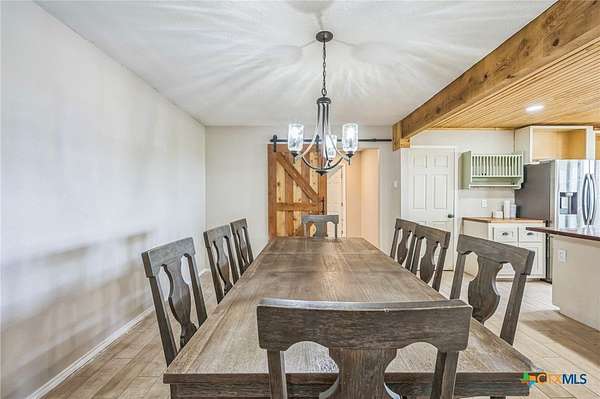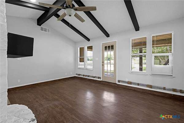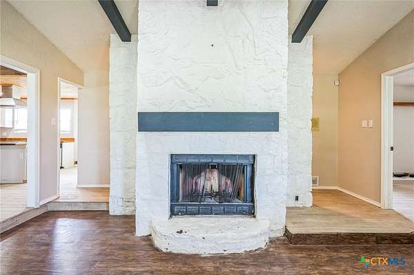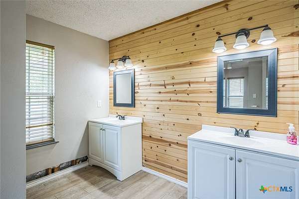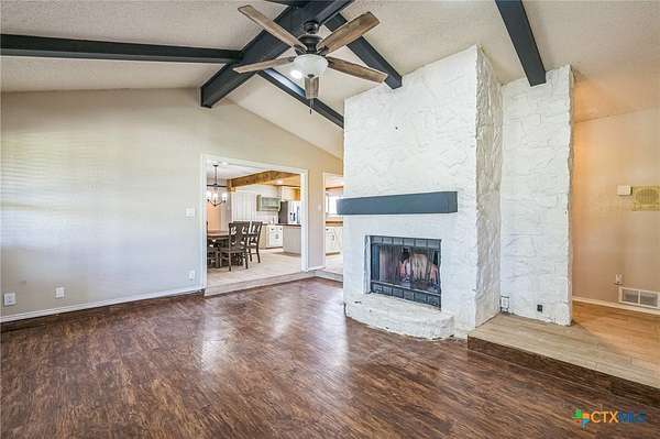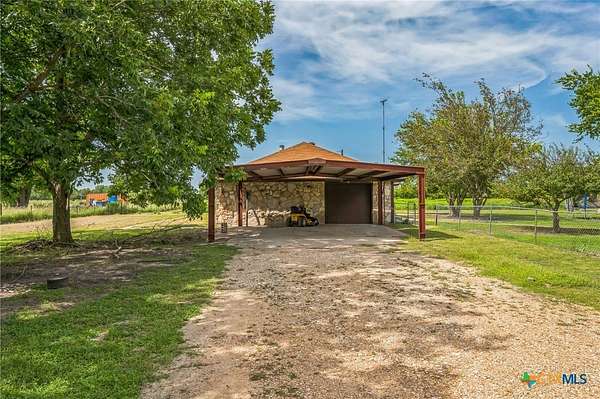 Escape to serenity in this stunning single-story home situated on over 7 acres in Moody, Texas. The majestic property is adorned with tall trees, creating a picturesque backdrop for your dream home. Inside, you'll find a functional layout with beautiful luxury vinyl plank flooring throughout, complemented by an abundance of windows that flood the interior with natural light. The living room is a cozy retreat, featuring a vaulted ceiling with beams and a gorgeous stone-built fireplace. Enjoy seamless indoor-outdoor living with direct access to the expansive covered patio and backyard space. The bright and airy kitchen is perfect for culinary delights, boasting recessed lighting, a center island/breakfast bar, shiplap ceiling, wooden countertops, pantry, and stainless steel appliances. The open layout flows effortlessly into the sun-filled breakfast area and lovely dining area, highlighted by a stunning overhead light fixture. The primary bedroom is a serene oasis, complete with a high ceiling, ceiling fan, luxury vinyl plank flooring, walk-in closet, and an en-suite bathroom with separate vanities, framed mirrors, window, and a relaxing bathtub and walk-in shower. The secondary bedrooms offer ample space, each featuring luxury vinyl plank flooring, a ceiling fan, and walk-in closet. The property also includes a covered carport, shed, pavilion, and plenty of land to create your ideal outdoor space. Moody, Texas, is a charming community with a small-town feel, offering a great balance of tranquility and accessibility. Residents enjoy outdoor activities like fishing and hiking, while also having access to local shops, restaurants, and community events. This home offers the perfect blend of seclusion and convenience, making it an ideal retreat for those seeking a peaceful lifestyle. The back of the property is in a 100 year flood plain