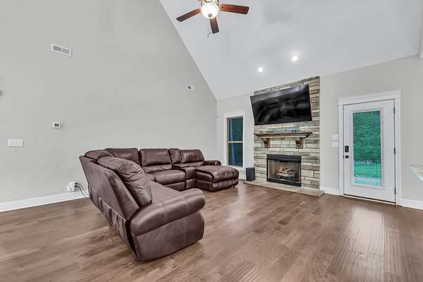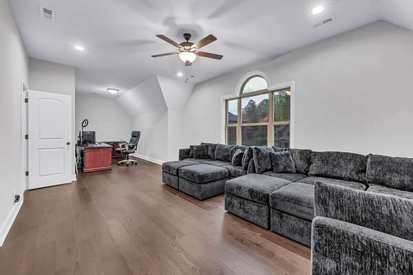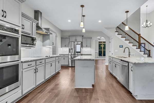 Situated on 1.51 acres, this beautifully appointed 4 bedroom, 4 full bath home offers 3,314 sq ft of refined living with a private, tree-lined backdrop. Designed with both comfort and entertaining in mind, the open concept layout features soaring ceilings and abundant natural light throughout, while the chef’s kitchen serves as the centerpiece with double islands and double ovens. The spacious primary suite is a true retreat, featuring two walk-in closets and a luxurious bath with separate vanities, as well as a separate tub and shower. A large bonus room provides flexible space for a media room, home office, or additional living area. Additional highlights include tinted windows for enhanced comfort and efficiency, along with a Vivint security system, offering a rare combination of space, privacy, and elevated design in a peaceful setting.