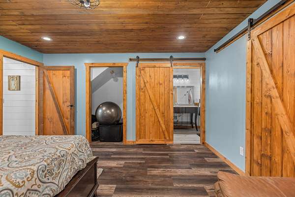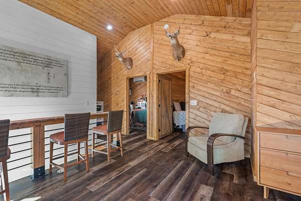- Cathedral Ceiling(s), Ceiling Fan(s), High Ceilings, High Speed Internet, His and Hers Closets, Kitchen Island, Natural Woodwork, Pantry, Primary Downstairs, Recessed Lighting, Vaulted Ceiling(s), Walk-In Closet(s)