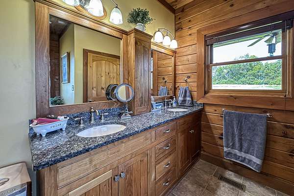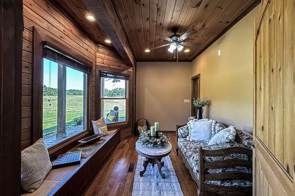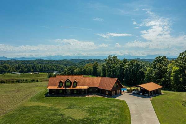 Have you ever wondered why so many people are choosing East Tennessee as their new home? It seems every week brings another story of someone drawn by the region's scenic beauty, affordable living, and welcoming communities. No state income tax. Not as cold as New York. Not as hot as Florida. No coastal hurricanes. No big snakes or alligators. Low property taxes. Low insurance costs. Less crime in this part of Tennessee. We don't experience the severe tornadoes found elsewhere in the country. Close to the Great Smoky Mountains. Easily accessible from 20 states within an 8-hour drive, making visits convenient for friends and family. The list goes on. And this modern log home perfectly captures the Tennessee vibe with its setting.In August, the residence was professionally appraised at $1,500,000. It is currently listed at $100,000 below that appraised value. Hearthstone Homes, an award-winning builder of heavy timber homes since 1971, built this residence. Though it is listed at 5,489 square feet, it offers 6,859 square feet under roof-excluding the garage, carport, and covered porches. The 2-car garage and separate 3-car customized carport provide shelter for 5 vehicles. Located on 5 acres of farmland, this private home offers stunning Great Smoky Mountains views and convenient access to local amenities. Dollywood is within 21 miles. The University of Tennessee and Knoxville's attractions are within 28 miles. Three large bedrooms plus extra basement sleeping space. 5 full bathrooms. The main bedroom includes an office/study, and the bathroom features a vintage bathtub and a custom walk-in shower. There are two wood-burning fireplaces: the main one features stacked stone, while the basement fireplace uses bricks and a mantle sourced from the family homestead. Part of the backyard is fenced for pets and kids. No city property taxes, only county. No HOA and short-term rentals are OK. Geothermal heating and cooling system. Geothermal systems offer significant advantages, including high energy efficiency, cost savings, environmental benefits, and long-term reliability. These systems typically operate at efficiency ratings between 300% and 500%. In other words, they can generate three to five times more energy than they use, which can result in lower energy costs compared to traditional HVAC systems. Stable underground temperatures allow these systems to cut energy use and lower utility bills by up to 70%. Geothermal heat pumps typically last over 20 years, and this one is just 4 years old. Additionally geothermal systems can provide hot water, further enhancing savings. Plus, the cooled air is naturally dehumidified, improving indoor air quality. Standing Seam Metal Roof. A key advantage of Standing Seam roofing is that its fasteners are hidden, protecting them from UV, moisture, wind, and other elements that cause wear. Panels without holes give your structure a cleaner, sleeker, and more modern appearance. Inground pool with custom 2022 liner. A complete set of kitchen appliances is available on both the main level and in the basement, offering versatility for use as an in-law suite. Main features an Elmira Stove, known since 1975 for its quality vintage designs blending traditional craftsmanship with modern technology. Red-oak hardwood floors cover the main areas; tile is used in bathrooms and the sunroom. Stamped concrete appears in the laundry, guest bath, breezeway, and porches, with stained concrete for the basement. Tongue & groove pine ceilings. Much of the home's wood came from trees on the family's 1850s farm, including custom walnut cabinets in the kitchen and master bath, cedar porch posts and trim, and cedar vanities in the upstairs bathroom. The cabinet and bathroom doors located in the basement originate from the family's original homestead. Relocating? Want to live the Tennessee lifestyle? Then this one-of-a-kind property is for you!