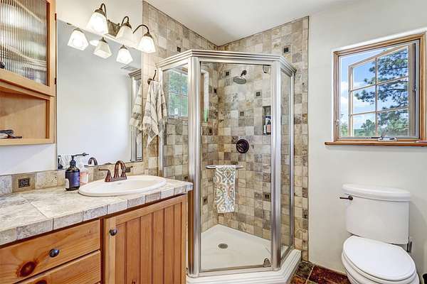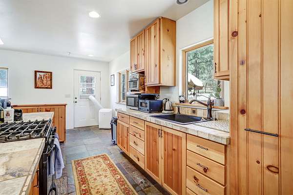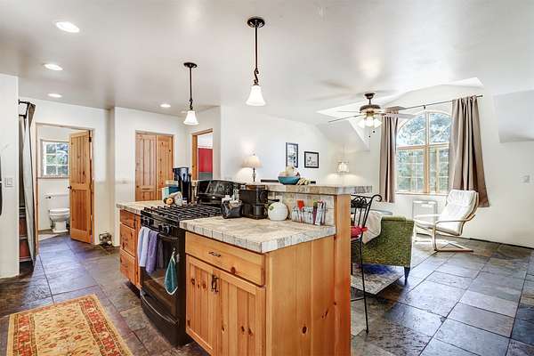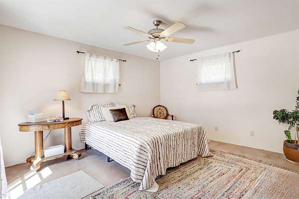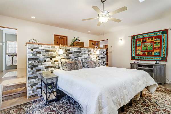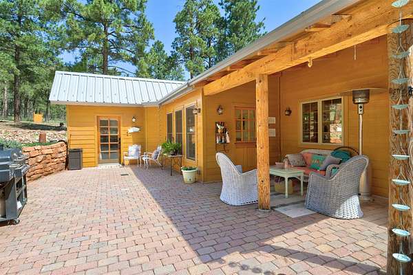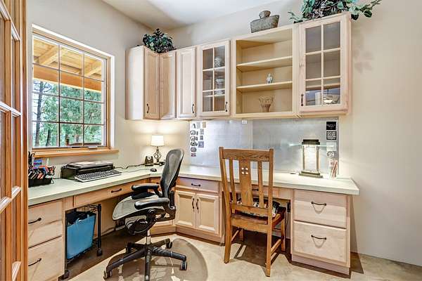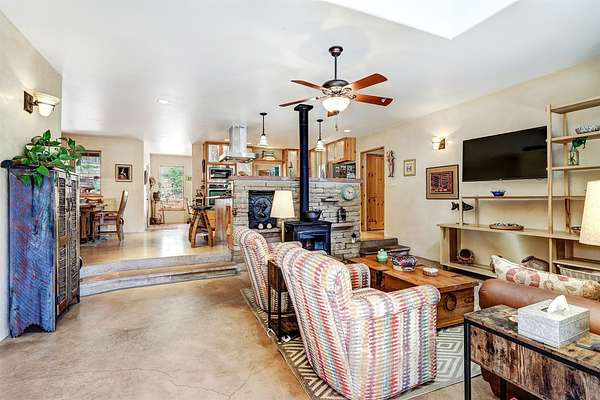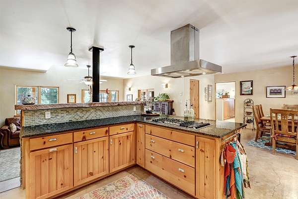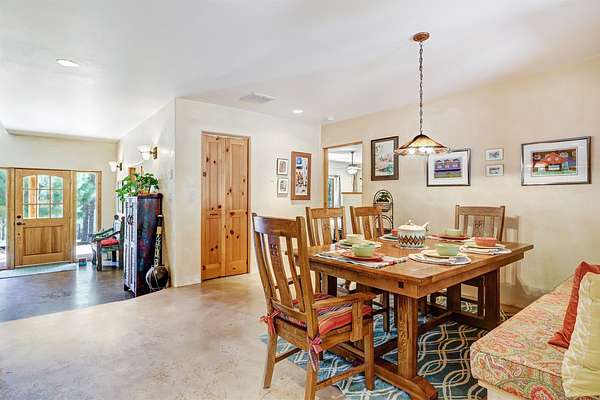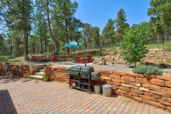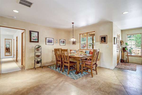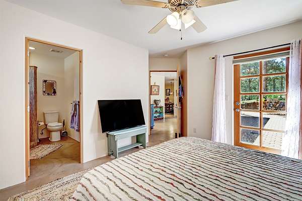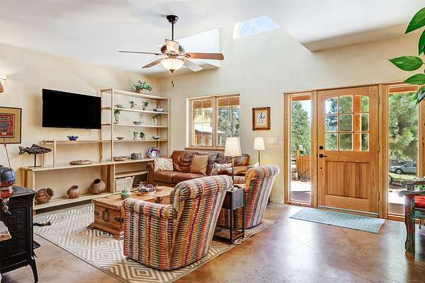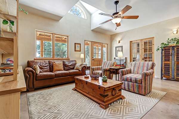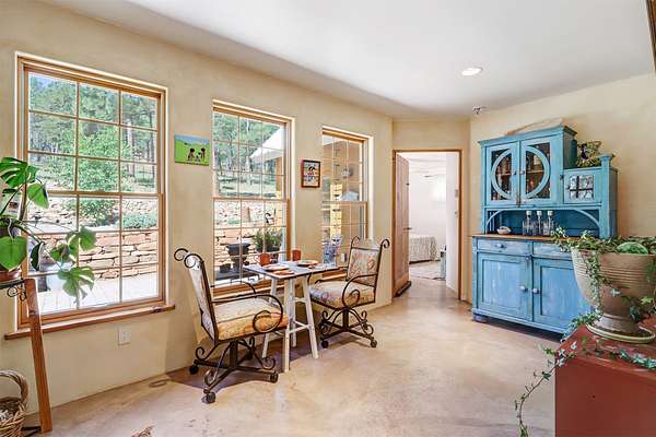 Attention Mountain Bikers and Horse Enthusiasts! Serene 12.5-Acre Retreat with mountain views! Main house and guest casita over garage is just 25 minutes from downtown Santa Fe. Nestled at the base of the stunning Glorieta Mesa this exceptional property with private well offers access to miles of scenic trails perfect for mountain biking and horseback riding. Located across the highway from the famous Glorieta Mountain Biking Trails, this property is ideally located for outdoor lovers. The main home blends rustic charm with modern comfort, featuring a spacious living area, two primary suites, a dedicated office, and a convenient dog bath. The tranquil, private setting makes it ideal for full-time living or a weekend getaway. Step outside to the elevated sandstone terrace-a perfect space for dining, relaxing, or taking in the panoramic mountain views. A standout feature is the 800 sq. ft. casita above the garage, complete with a strong rental history-ideal as an income-producing long-term rental or a welcoming guest suite. Additional highlights include a fully fenced yard, ample RV parking, direct access to the Santa Fe National Forest, and horse-friendly property making it easy to enjoy trail riding and open space right from your property. Whether you're seeking a serene lifestyle, an investment opportunity, or proximity to Santa Fe's rich cultural and outdoor offerings, this unique property delivers on all fronts.