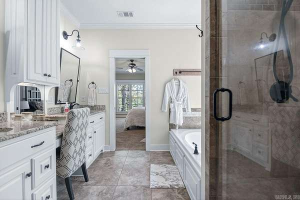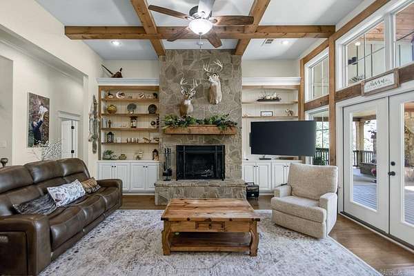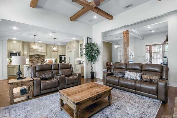 Beautiful custom home with panoramic views nestled in the woods outside of West Little Rock. This custom 4 bed, 3 bath home on 3+ private acres is the kind of place that's hard to leave. Step inside to wood beams, a massive rock fireplace, a dream kitchen with double ovens where true custom craftsmanship set the tone. Also enjoy your walk in pantry, private office, theatre room and built in safe room. Outside, 800 square feet of covered deck with its own fireplace and panoramic hill views make every evening feel like a getaway. Also has a 3 car garage, floored attic, circle drive and so much more. This is a must see!