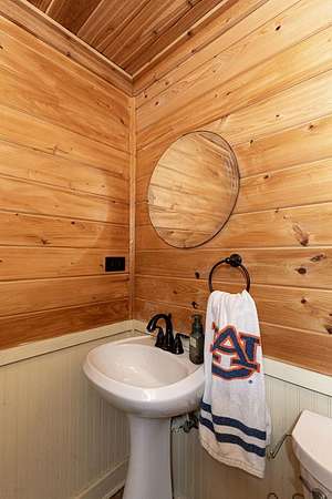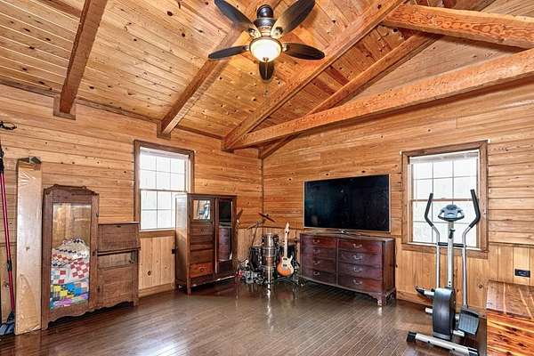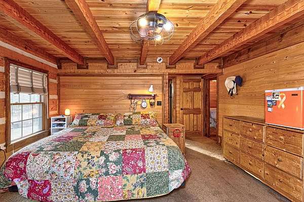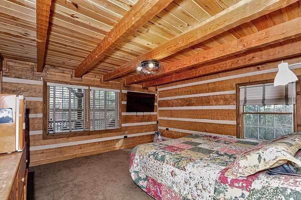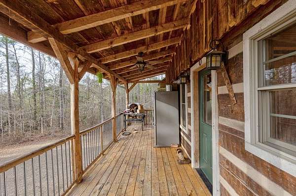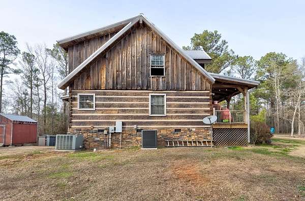 Built in 2011, this authentic log cabin sits on over 34 private acres in highly sought-after Harris County. Hardwood floors, soaring cathedral ceilings, and dramatic exposed wood beams create a true lodge-style atmosphere. The living room is anchored by a stunning floor-to-ceiling stone gas fireplace with a two-story masonry backdrop. The beautifully stained all-wood kitchen features custom cabinetry and tile flooring. A cozy loft overlooks the main living area. The primary suite includes a walk-in closet, double vanity, separate shower, and jetted tub with peaceful wooded views. Outside, enjoy an inviting front porch supported by hand-hewn log support posts, along with a metal roof, masonry foundation, and handicap ramp for easy access. The land is ideal for hunting and nature watching. Surrounded by pine forests and open pastures, yet just 20 minutes to Columbus and 15 minutes to Callaway Gardens-this property offers rare privacy without sacrificing convenience. $5,000 toward buyer's concession.