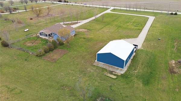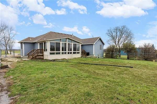 Heading west on 56 highway, turn left on to Lawrence St (1600 Rd) and go approximately 0.5 miles. House is on the right.