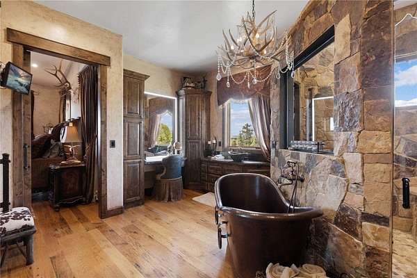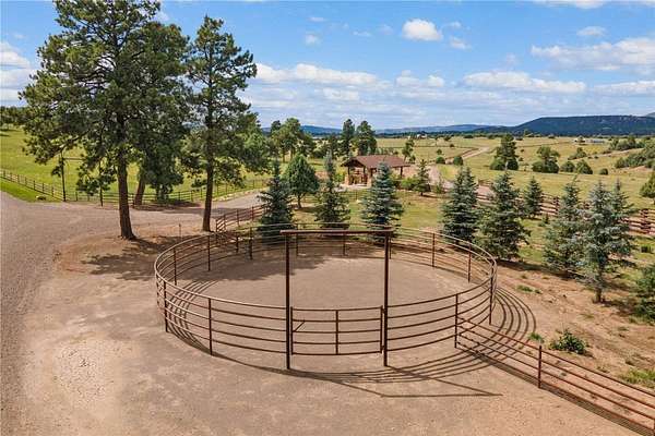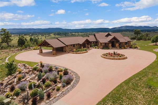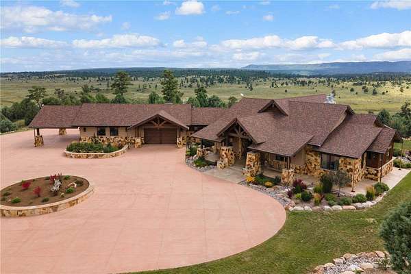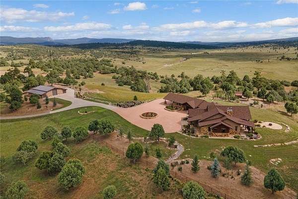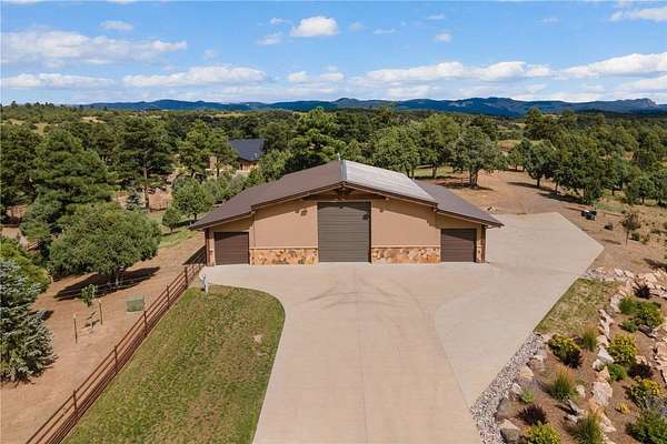 Price Reduction!Welcome to Palomino Pines Ranch Estate luxury equestrian paradise set in the serene Southern Rockies. Encompassing 400 acres of enclosed, private land at over 8,000 feet, this custom-built estate offers breathtaking 360-degree views and a perfect blend of elegance and craftsmanship.The 3,400-square-foot living space plus garages is a masterpiece, featuring riverbed stone accents, antlered lighting, high wood beams, and chestnut floors. The gourmet kitchen is equipped with custom cabinets, granite countertops, and stainless steel appliances. Spacious living areas include a wine cooler, abundant storage, and outdoor walkways and gazebos that enhance the home's charm. A large, oversized, fully finished heated garage is perfect for your vehicles and side-by-sides. For the passionate/professional equestrian, this estate is an unparalleled dream. Bring your Quarter horses, Palominos, Thoroughbreds, Arabians, Morgans, and even bison to this state-of-the-art facility. The property features a 13k-square-foot heated domed indoor arena with 9 stalls and caretakers' quarters, ensuring the utmost protection for your animals and safety for riders. Additionally, the estate boasts an Olympic-style outdoor training arena, 7 outdoor stables, a 150' x 350' riding area, and multiple steel-fenced pastures. With 5 RV spots equipped with full hookups, ponds, and water tanks, the estate is as functional as it is beautiful. This property isn't just for horses-it's also a haven for all your pets. A 1/2 acre pet hotel, complete with fencing, a large dog house, and a spacious run, ensures every family member, whether two-legged or four-legged, has a luxurious place to call home. Built as a "forever home," no expense was spared in crafting this one-of-a-kind sanctuary. The Estate represents a rare and extraordinary opportunity. It's the life you've always dreamed of. Additional living space of 1000 sq ft in a separate garage. Bonus! 330 acres added! Now 400 acres!