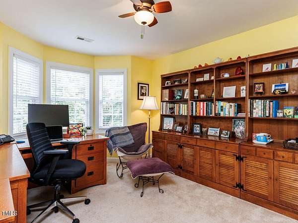 Move right into this pristine home on 3+ private acres in coveted Bobcat Point. Enjoy a flexible layout with hardwoods throughout the first floor, gas fireplace, separate dining room and both a family room and a versatile living room that can serve as a den or office. The kitchen features granite counters, island, pantry, and open flow to the family room and breakfast nook. The generous primary suite offers light, privacy, and a bath with soaking tub & handheld shower wand plus a separate shower with seat. The second floor includes an additional room ideal for an office or guest area, and there's a large third-floor bonus room with a spacious walk-in attic. A heated/cooled 1,000 sq ft detached office/workshop with kitchenette and utility sink is perfect for your business, hobbies, or studio dreams. Outdoor perks: screen porch, firepit, outdoor shower, walking trails, stream, fenced yard, sheds, NO HOA, paved drive, fiber internet, new HVAC units in 2022 & 2023, and rural peace-just minutes to downtown, festivals, the new YMCA, and more! Don't miss out-opportunity knocks!