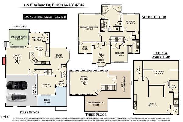- Bathroom x 3, Bedroom x 3, Bonus Room, Dining Room, Family Room, Laundry Room
