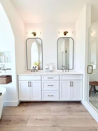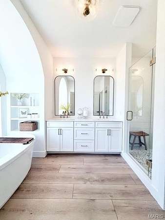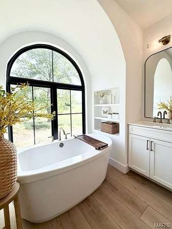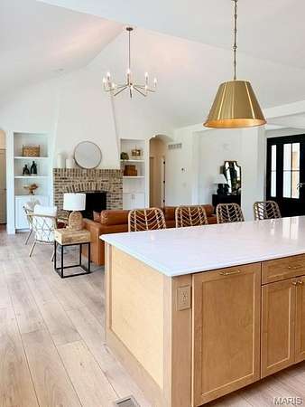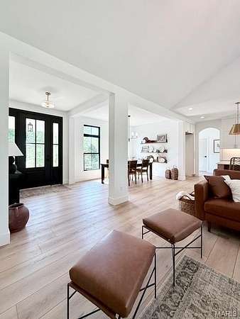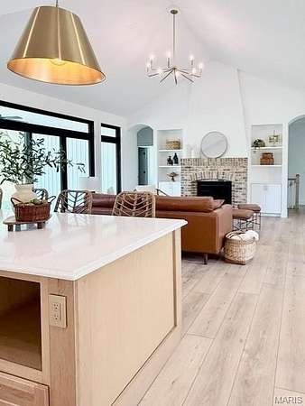 Tucked behind a tree-lined private drive and perched on 2.95 hilltop acres inside Columbia city limits, this new custom build is the kind of home that makes you slow down and stare. The vaulted great room welcomes you with soaring ceilings, a cozy gas fireplace, and upgraded black windows framing sweeping hilltop views. The chef's kitchen is designed for real cooking and entertaining- a 48" range and 48" built-in refrigerator, upgraded cabinet storage, and luxury vinyl plank flooring throughout the main level. The spa-like master suite features a fully custom tile shower, separate soaking tub beneath an arches niche, and his and hers walk in closets. Downstairs: a finished rec room, 4th bedroom , full bath, plus 996 Sq Feet unfinished and ready to expand. Oversized 3-car garage (25' deep) and covered front porch. Highly rated Columbia CUSD 4. $8,000 appliance allowance included. Privacy, modern upgrades, and everyday practicality on one of Columbia's most desirable lots.