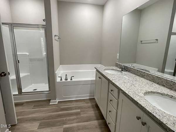 - Bathtub/Shower Combination, Ceiling Fan(s), Granite Counters, Primary Downstairs, Separate Shower, Smooth Ceilings, Soaking Tub, Tray Ceiling(s), Walk-In Closet(s), Walk-In Shower