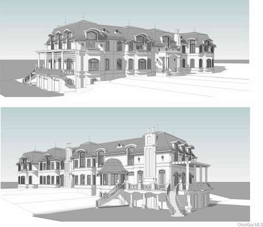 The existing 4,600+ square foot expanded brick ranch has been completely gutted down to the framing, providing a blank canvas ready for your vision. With a 3 car garage and a solid structure already in place, this property is ideal for anyone looking to streamline the building process and bring a high-end design to life. The property also comes with unapproved plans for an 8,000 square foot French Chateau with a pool and pool house, offering a glimpse of its ultimate potential.