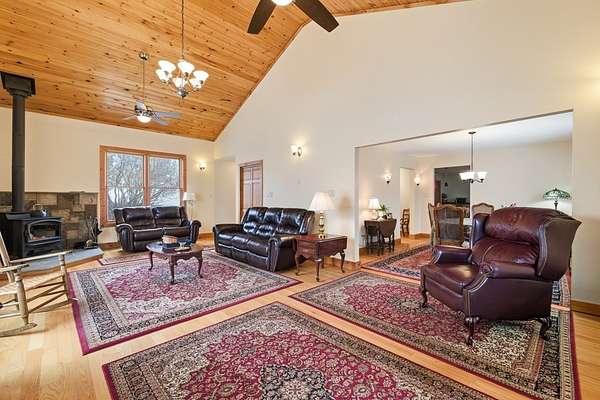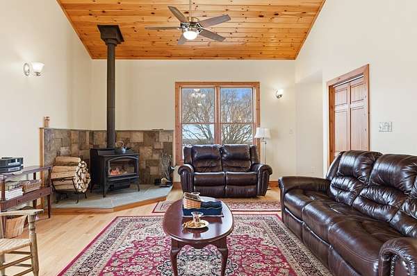 Beautiful Custom-built 4608 sq ft country home on full basement, on approx. 83+ acres in scenic Potter Co. with 60% open & 40% wooded land for privacy. Property features 6 fenced pastures, 2 paddocks, two hayfields, established gardens, fruit & nut trees, sugar maples, and two ponds (one stocked). Bright, spacious home offers vaulted ceiling in great room with wood stove, hardwood floors, oversized kitchen with large island & Amish-built cabinetry, walk-in pantry, first-floor bedroom and bath, primary suite, additional bedrooms plus bonus rooms, wraparound deck, full basement with pantry and root cellar, basement 2-car garage. 2x6 construction, 50-year steel roof, in-floor radiant heat, bank barn, heated workshop, and greenhouse complete this exceptional rural property. 24 Hour Notice, Preapprovals or Proof of Funds required to schedule a showing. Sale of home is contingent upon the Sellers finding suitable housing. OGM's Negotiable | Sellers may consider selling additional acreage.