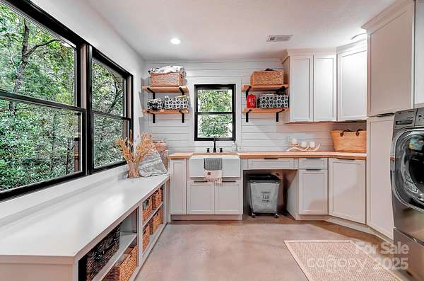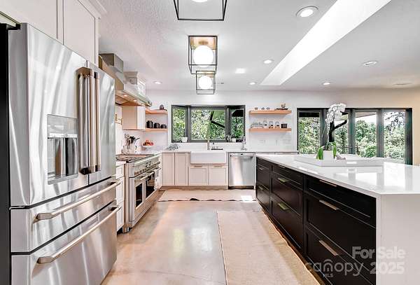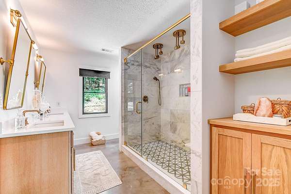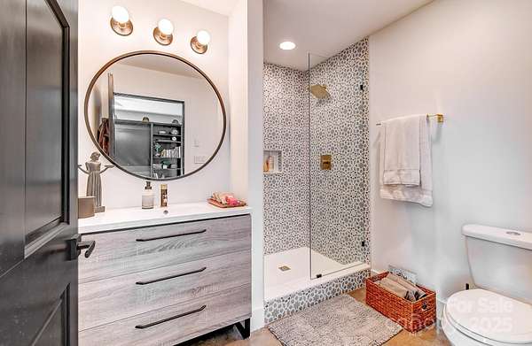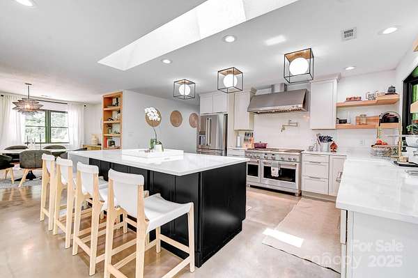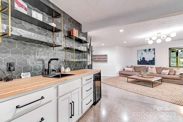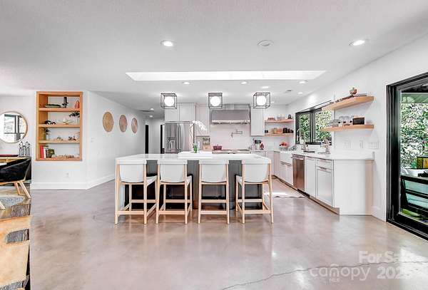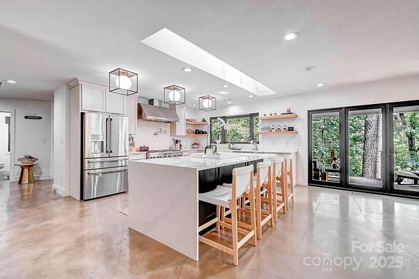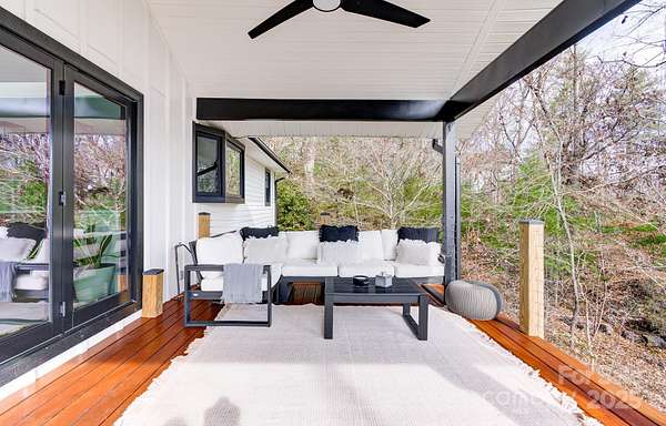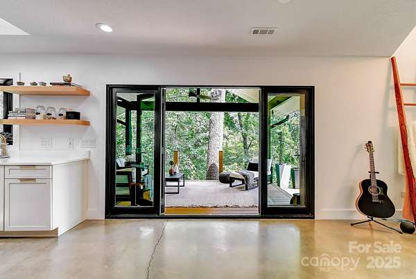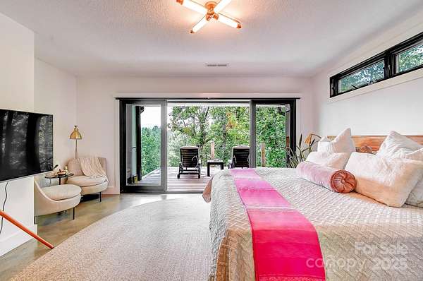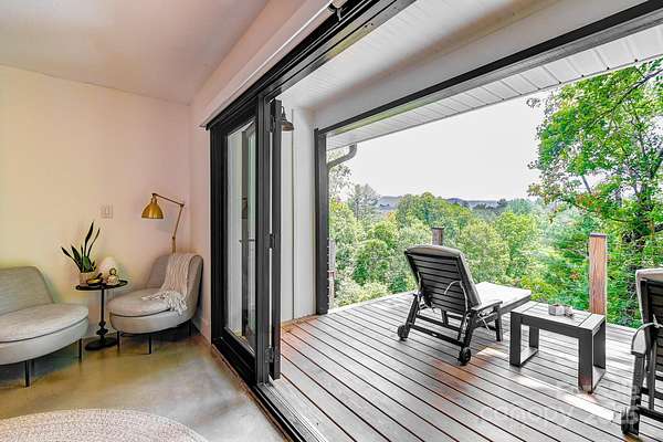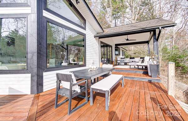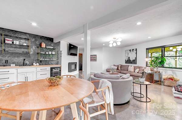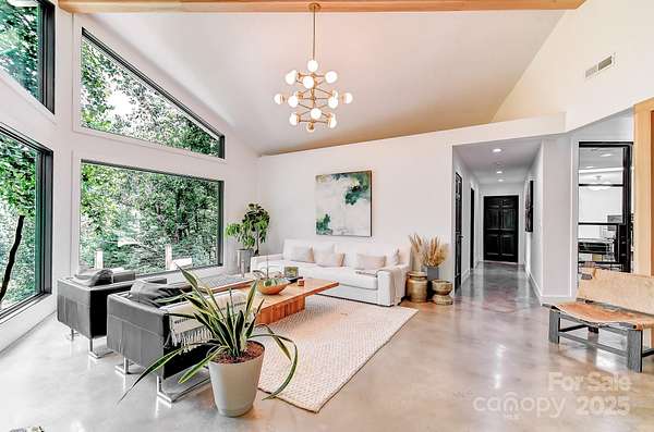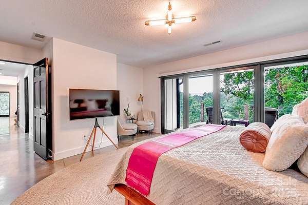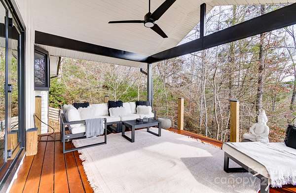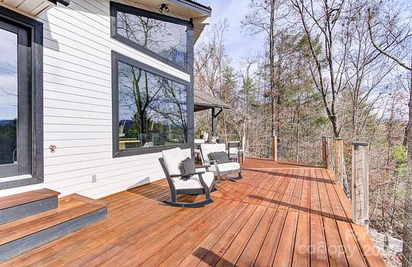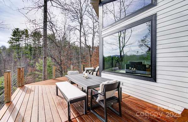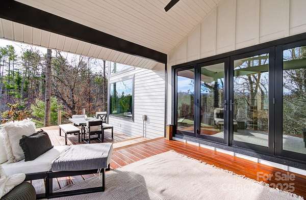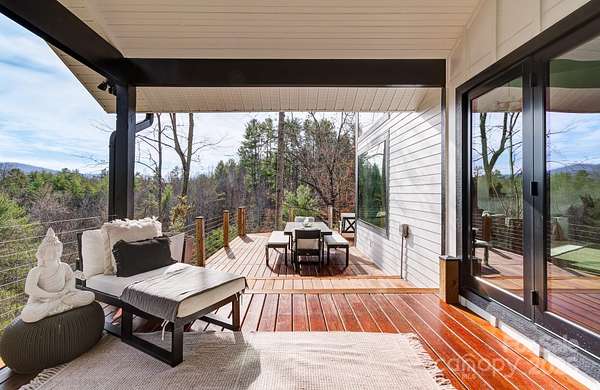 Perched on approximately 15 acres of pristine mountain landscape, 169 Pickens Road embodies modern luxury in perfect harmony with nature. Just 15 minutes from the vibrant energy of downtown Asheville and minutes from charming Weaverville, this exceptional property offers a rare blend of refined design, serenity, and convenience. Every detail of the residence has been masterfully reimagined with a contemporary aesthetic that highlights clean architectural lines, expansive glass walls, and open, light-filled living spaces. From every angle, the home captures breathtaking long-range mountain vistas that define the Blue Ridge experience. The main level welcomes you with soaring ceilings and a seamless flow between the living, dining, and kitchen areas-crafted for both elegant entertaining and relaxed daily living. The kitchen is a statement in modern design, featuring sleek finishes and thoughtfully integrated functionality. Heated and cooled floors extend throughout both levels, ensuring effortless comfort in every season. Two luxurious primary suites provide private retreats, while flexible additional spaces accommodate guests, work, or creative endeavors with ease. On the lower level, a hidden speakeasy with a custom wine cellar and full bar offers an intimate, one-of-a-kind setting for entertaining or unwinding in style. Outdoors you will find three decks all with incredible mountain views, one of which is a private deck off the primary suite. On top of all of that, a network of private trails winds through rolling meadows and forested acreage-ideal for hiking, horseback riding, or simply soaking in the tranquility of the surrounding landscape. A serene small pond adds to the estate's sense of retreat and natural beauty. Offered furnished (available for separate purchase), this property invites you to step into a lifestyle where elegance, privacy, and the timeless allure of the Blue Ridge Mountains converge. For those seeking a true sanctuary-where modern sophistication meets mountain serenity-169 Pickens Road stands in a class of its own.