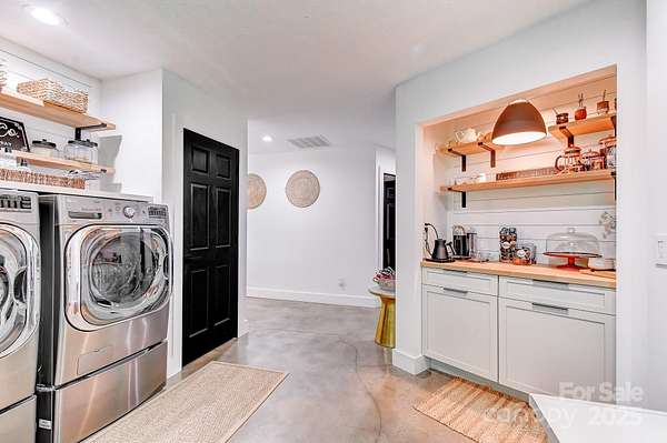 - Bar Fridge, Dishwasher, Disposal, Double Oven, Exhaust Hood, Gas Oven, Gas Range, Plumbed For Ice Maker, Refrigerator, Washer/Dryer