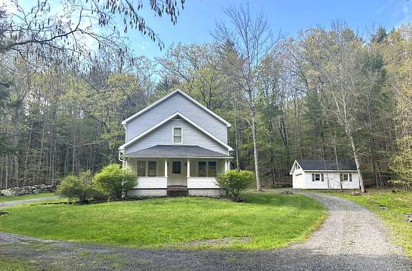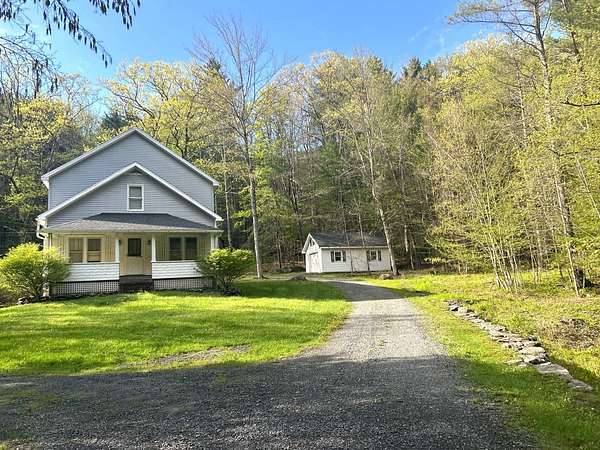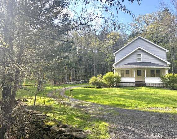 Escape The Hustle & Bustle & Discover your perfect Catskills getaway located on a quiet country road with 19 stunning acres of pure tranquility. This charming 2-bedroom, 1-bath home offers a rare blend of comfort, adventure, and privacy. ideal as a vacation retreat or weekend escape or year-round place. With road frontage on two sides and plenty of space for four-wheeling, hiking, or simply soaking in the natural beauty, this property is an outdoor lover's dream. The fully renovated kitchen features Sile-stone countertops and stainless steel appliances, while original wood floors and woodwork add a touch of warmth & character. A full walk-up attic provides storage or expansion potential. Enjoy a peaceful setting with mature trees, perennial gardens, stone walls, and a year-round stream all just minutes/short drive to ski resorts (Windham, Hunter, Belleayre), charming towns, golf, dining, and shopping & so much more. Don't miss this unique opportunity to relax, recharge & reconnect with nature--- this is a unique opportunity to own your own slice of the Catskills. A detached garage, circular driveway, beautiful stone walls are just a few more added features for one to see when viewing this property-Must be seen to be appreciated. A rare Catskills gem