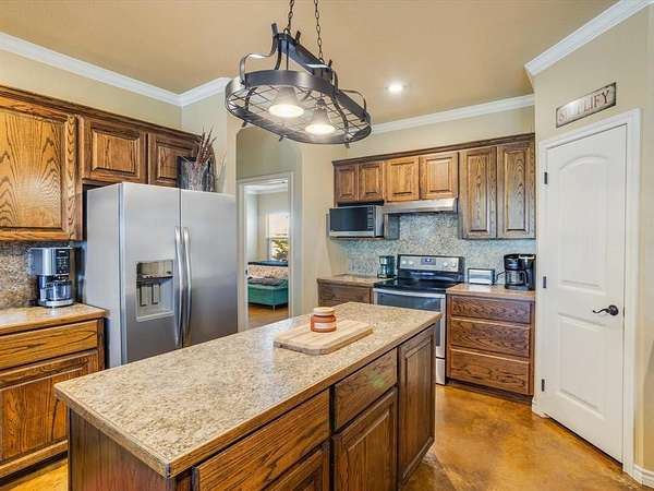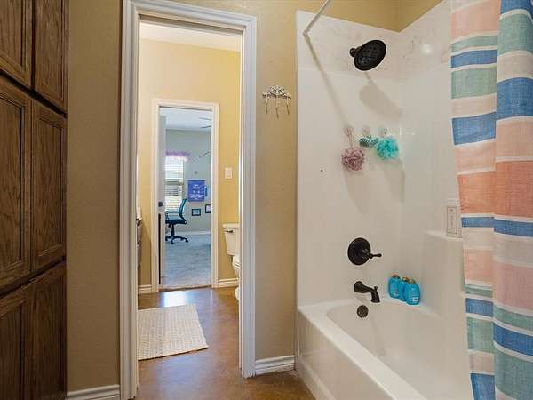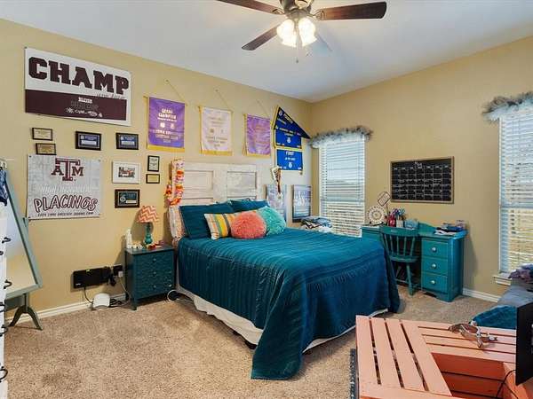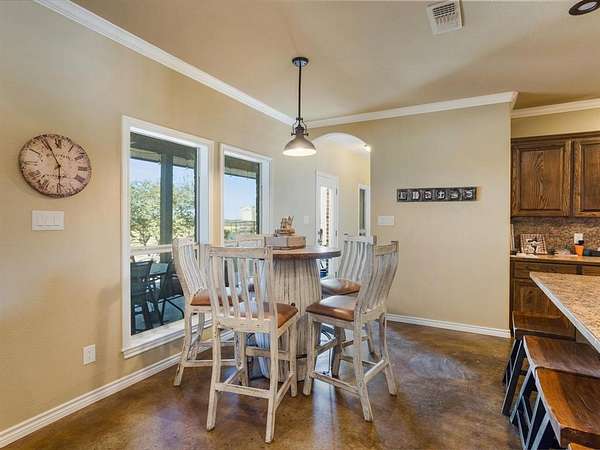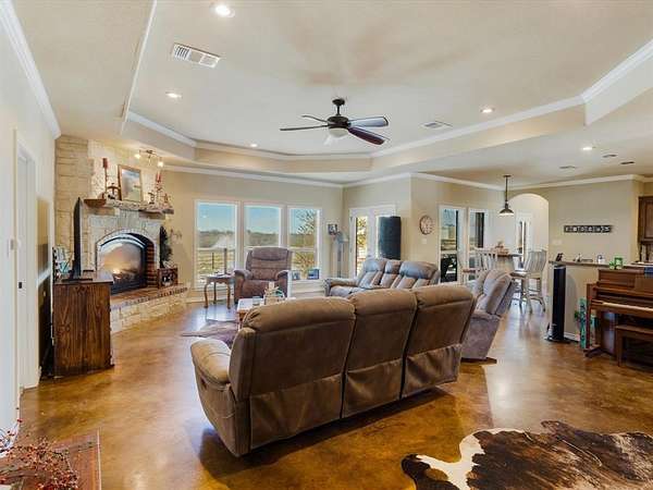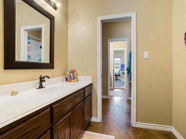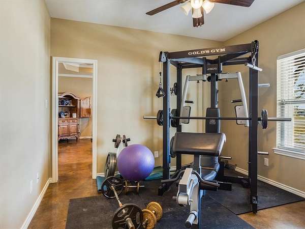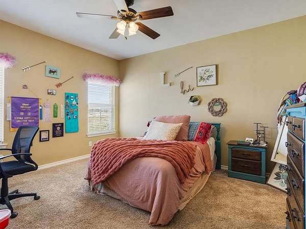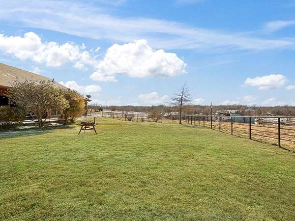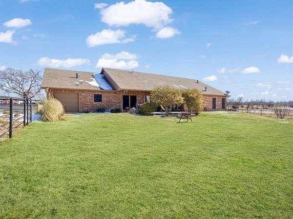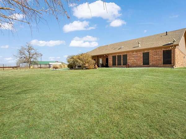 Inside, you'll love the open concept living, dining, and kitchen area, featuring stained concrete floors throughout and a cozy gas fireplace. The split floor plan provides privacy and comfort, with oversized closets in each bedroom for plenty of storage. The primary suite boasts a spacious ensuite bath and an attached workout or office space, perfect for working from home or staying in shape without leaving your sanctuary. Two bedrooms share a convenient Jack and Jill bath, while the 4th bedroom enjoys access to its own private bath and even a storm cellar outside, an excellent bonus for peace of mind. You'll also appreciate the large utility room and attached storage area connected to the 2 car carport. Outside, relax or entertain guests on the large covered back porch overlooking your fenced pasture, plenty of space for animals, gardening, or outdoor fun. Located just outside city limits but still close to town, this home combines country tranquility with modern convenience. Situated within the highly sought after Bells ISD, this property truly offers the best of rural Texas living. Features at a glance, 4 Bedrooms, 3 Bathrooms, large living area, Brick ranch style home on 3 acres. Open concept floor plan with stained concrete floors. Gas fireplace and oversized closets. Master suite with ensuite bath, attached office, workout room. 2 bedrooms with Jack & Jill bath; 4th bedroom with private bath. Large utility room and additional storage off 2 car carport. Covered back porch for entertaining or relaxing. Outside city limits. Perfect for horses or livestock. Don't miss your chance to own this beautiful country property with room to live, work, and play. Schedule your showing today.