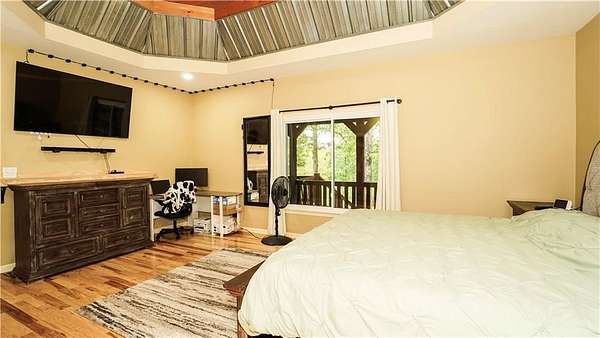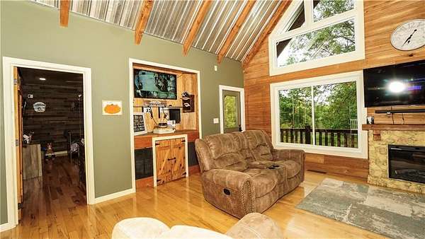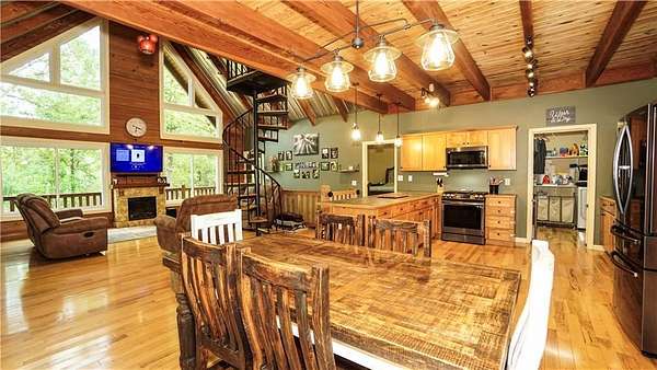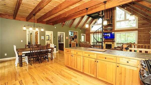 The country setting is calling your name! If you have been waiting to find the most perfect place for your family to create memories...look no further! So much to offer in this sought out area offering hustle free, no traffic, farm raising, outdoor play, dirt between your toes, carefree living. The outdoor space offers potential for a garden, farm animals, pasture for cows and/or horses. Newly built 50x80-foot covered Pole Barn will be your best friend offering an abundance of storage space for your outdoor toys and parking your RV. The wrap around porches is a special getaway retreat for those family gatherings, games, cookouts, relaxation, morning coffee, afternoon tea, watching the wildlife, hearing the birds, maybe a campout event & so much more. It's time for you to breath the fresh air, get the farm tractor running, and let the kids explore the outdoors! MASTER ON THE MAIN! 10+ ACRES-w/4 BR, 2.5 BA, natural light coming through those beautiful new, updated windows! Open Floor Concept, 2 Story w/hardwoods throughout, Exposed Beams, Gourmet Kitchen w/Custom Built Cabinets, Tiled Counters and spacious Island for extra eating space or breakfast bar. Jack/Jill bath on main, you will love the spacious secondary bedrooms! The spiral staircase w/wrought Iron spindles leading to the loft area and separate huge room that can be made either a bedroom/office/media room/pool table space/game room/guest room, etc is another reason to love this beautiful home. The master suite features a custom trey ceiling, with a full size master bathroom with a walk-in tiled shower, separate oversized tub, double vanity and linen closet. The unfinished basement is stubbed for a full bathroom and offers amazing extra space to fit any of your needs. Metal roof has been recently maintained with new screws and ridge caps. Newly painted gutters, new fence built on approximately 4 acres in 2024 & newly sanded and stained cedar plank siding, eight camera Lorex security camera hardwired, surrounding the entire house so you can watch your farm animals, wildlife, kids, etc. New HVAC system, and new whole house 3 stage filtration system (acid neutralizer water softener) professionally installed producing clear, clean water to every tap. Gated driveway with keypad entry. All new windows and doors! Yards have been reseeded with a covering of hay over fresh seed. Did I mention the house is built on super heavy duty steel beams!! WOW! This property is truly amazing! Won't last!