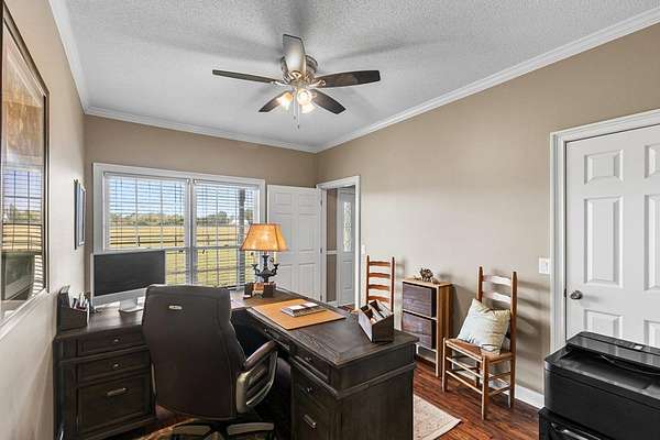 Now 43 acres — additional acreage, two cottages, and infrastructure added. Drive through the gate. Windows down. Listen. No traffic. No sirens. Just wind through pasture grass and birds you forgot existed. 43 gated acres of rolling pasture and mature hardwoods — the rare blend most buyers search for and never find. Not all woods with no usable land. Not a flat crop field with no soul. This property has both. The 5BR/3BA two-story has been thoughtfully updated — fresh paint, new lighting, fans, and durable LVP flooring designed for real life with animals and boots. Kitchen filled with natural light. Fireplace anchors cooler evenings. Sunroom overlooking the property. Two oversized bonus rooms flex into guest suites, office, schoolroom, or whatever this season requires. 2-car garage plus storage. New cross-fencing. Refreshed landscaping. Garden area, pole barn, and storage shed. Two exteriorly completed cottages with septics, drain fields, and a dedicated well in place — positioned for guest quarters, home business, rental income, or endless other possibilities. Paved road frontage on two sides. 15 min to Dothan and a top-ranking regional hospital. Easy drive to the Emerald Coast. 45 min to Lake Eufaula. Fiber internet available. A community rooted in faith, family, and genuine connection. A pace that lets you breathe. You've been looking for this. It's here.