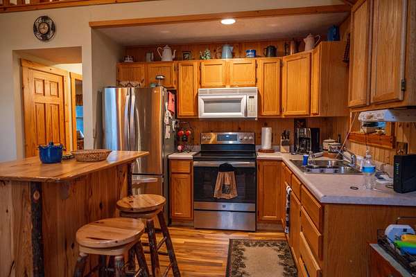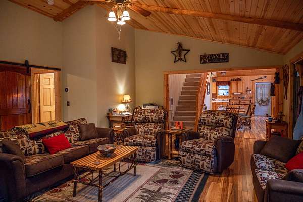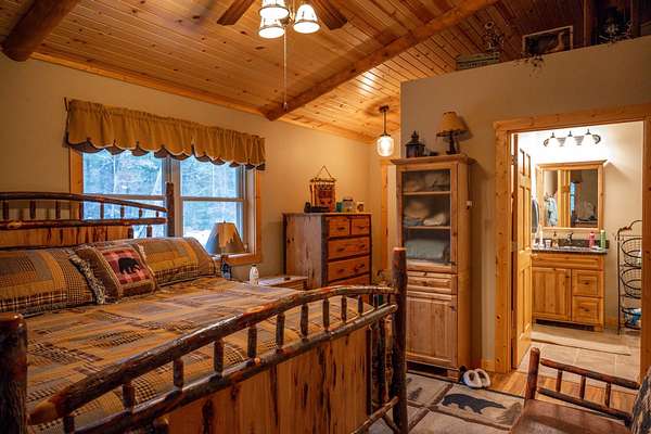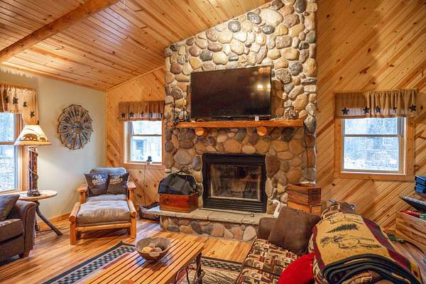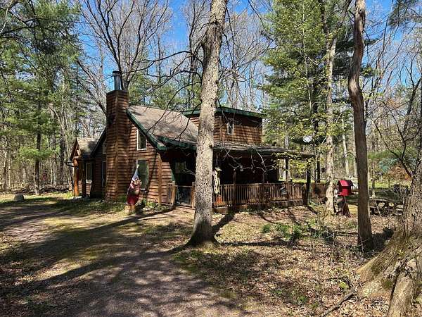 Imagine owning a beautiful home surrounded by endless recreational opportunities—hunting, fishing, snowmobiling, ATV riding, and boating—all just minutes away. Perfectly positioned between two of Wisconsin’s largest lakes, this property offers the ideal balance of adventure and relaxation. This exceptional home features 3 bedrooms, 2.5 bathrooms, along with a charming cabin perfect for guests or kids, plus a large storage shed for all your gear and toys. Inside, you’ll find stunning craftsmanship throughout, highlighted by rich woodwork and two striking stone wood-burning fireplaces that create a warm, inviting atmosphere. Enjoy the outdoors from the covered porch or expansive deck, all set on 3.2± wooded acres that provide privacy and a true Northwoods feel. The property includes three parcels, with two adjoining lots offering the potential to sell or develop separately, making this an excellent opportunity for a primary residence, vacation getaway, or investment.