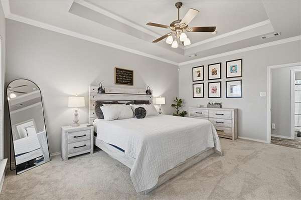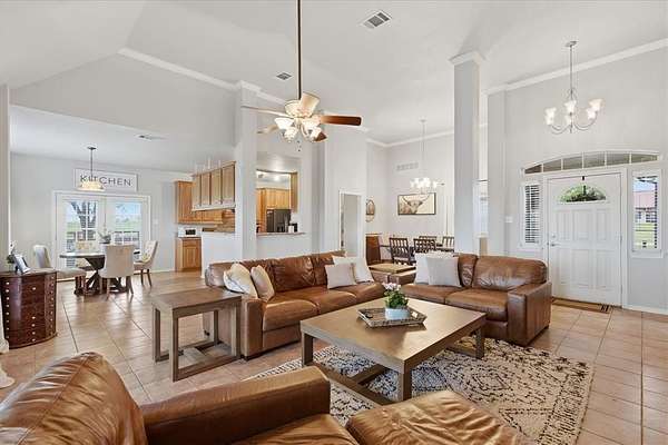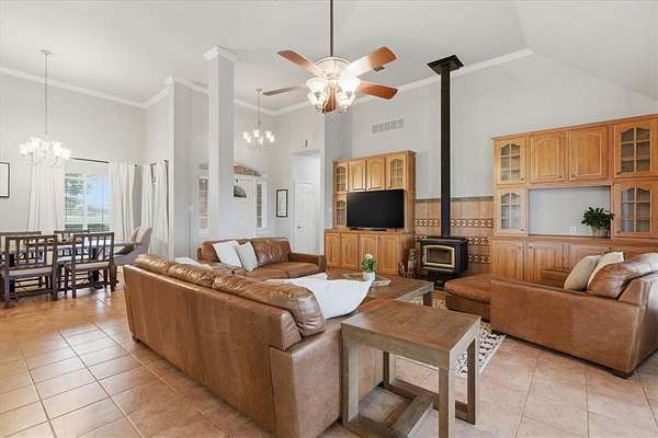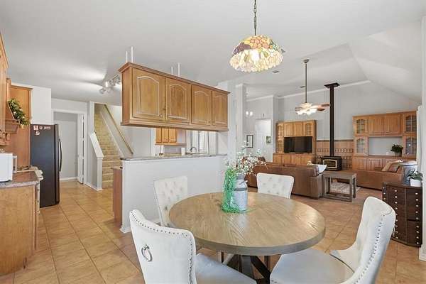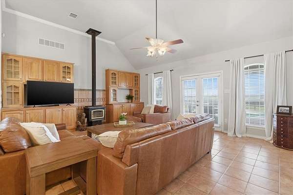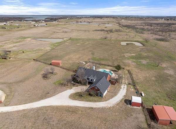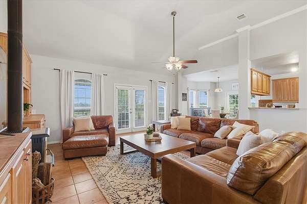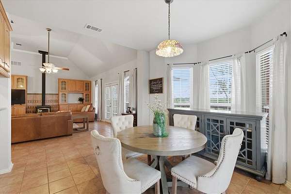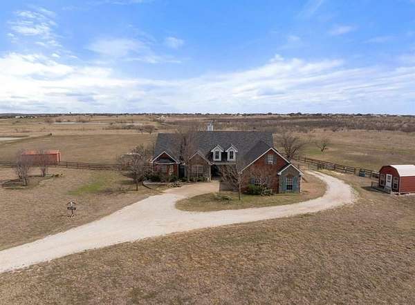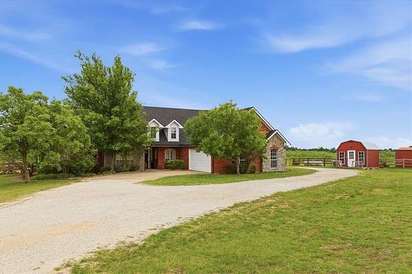 Country living at its finest on 6.49 picturesque acres near Lake Ray Roberts! This spacious 2,884 sq ft home offers 3 bedrooms, 2 bathrooms, and a versatile 1.5-story layout designed for comfortable living and entertaining. The large open living area features a charming decorative stove fireplace, creating a warm and inviting atmosphere.